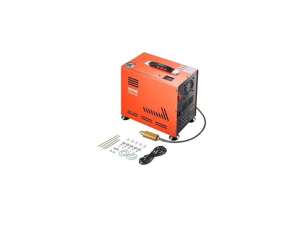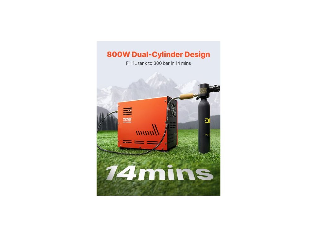 Vzduchový kompresor PCP, 800W dvouválcový kompresor PCP pro vzduchovku 4500PSI/30Mpa s vestavěným chladicím systémem ventilátoru, automatické zastavení | Bezolejový kompresor s paintballovou nádrží pro vzduchovku, potápěčskou láhev