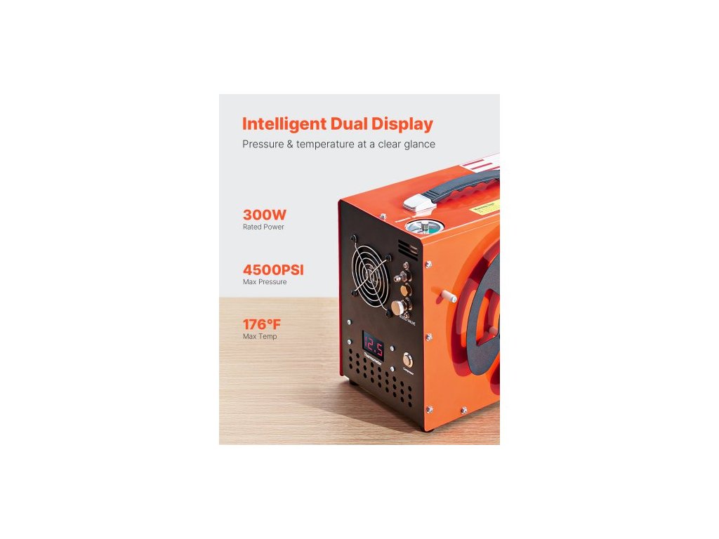 Vzduchový kompresor PCP, kompresor PCP pro vzduchovku 4500 PSI/30 MPa s vestavěným měničem a chladicím systémem ventilátoru, automatické zastavení přenosného kompresoru na paintballovou bombu DC12V/AC230V pro vzduchovku, potápěčskou láhevInteligentní duální displej