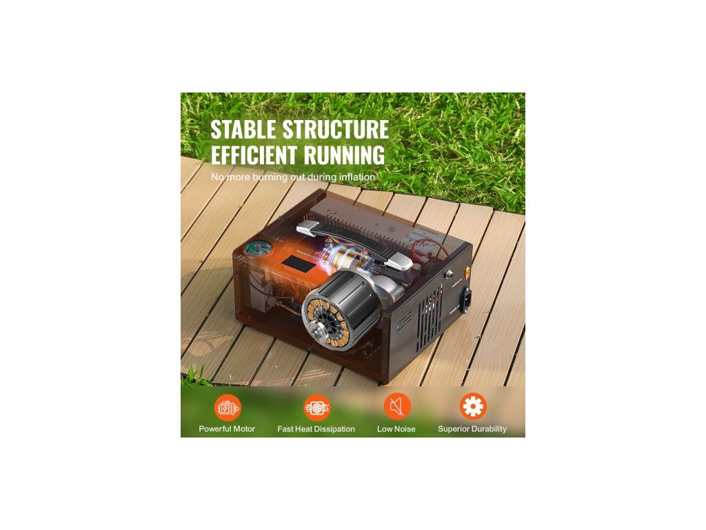 Vzduchový kompresor PCP, přenosný kompresor PCP s tlakem 4500 PSI a vestavěným měničem, automatické zastavení | DC12V/AC230V | Kompresorové čerpadlo na paintballovou bombu bez obsahu oleje a vody pro vzduchovku a potápěčskou láhevRegulace tlaku v reálném čase
