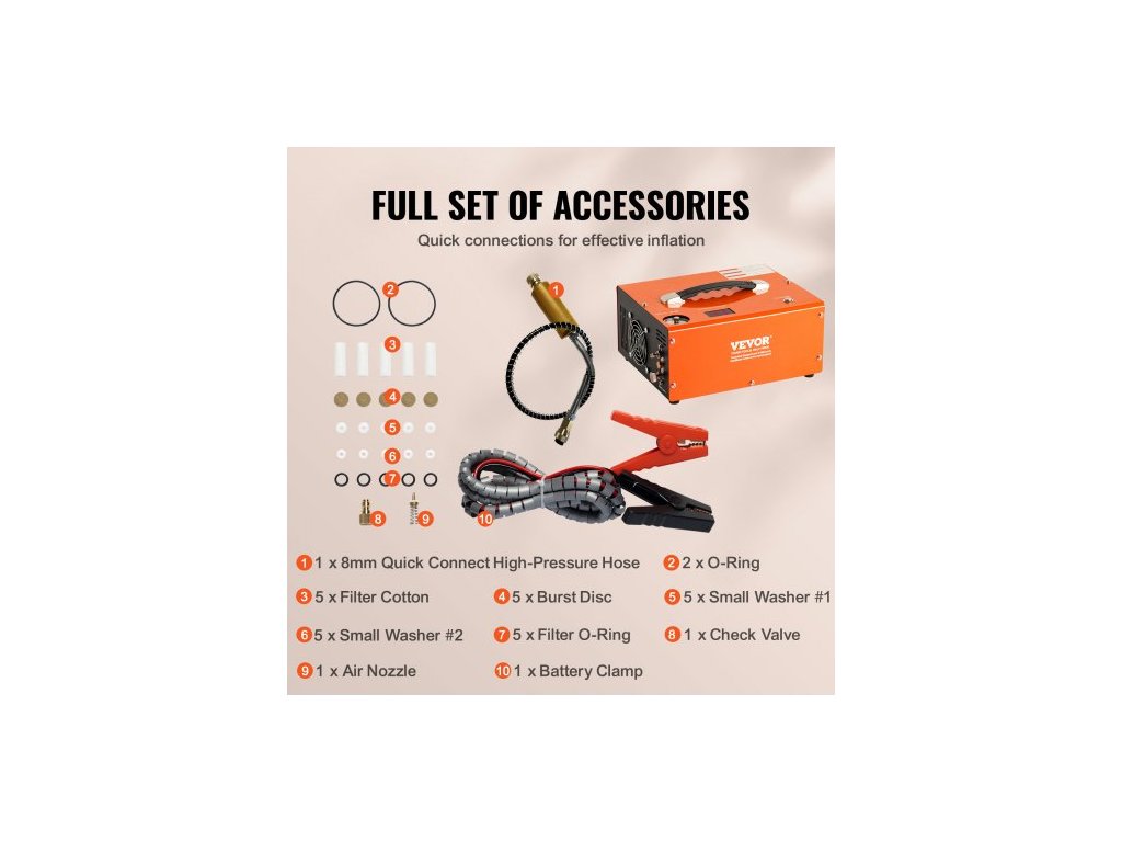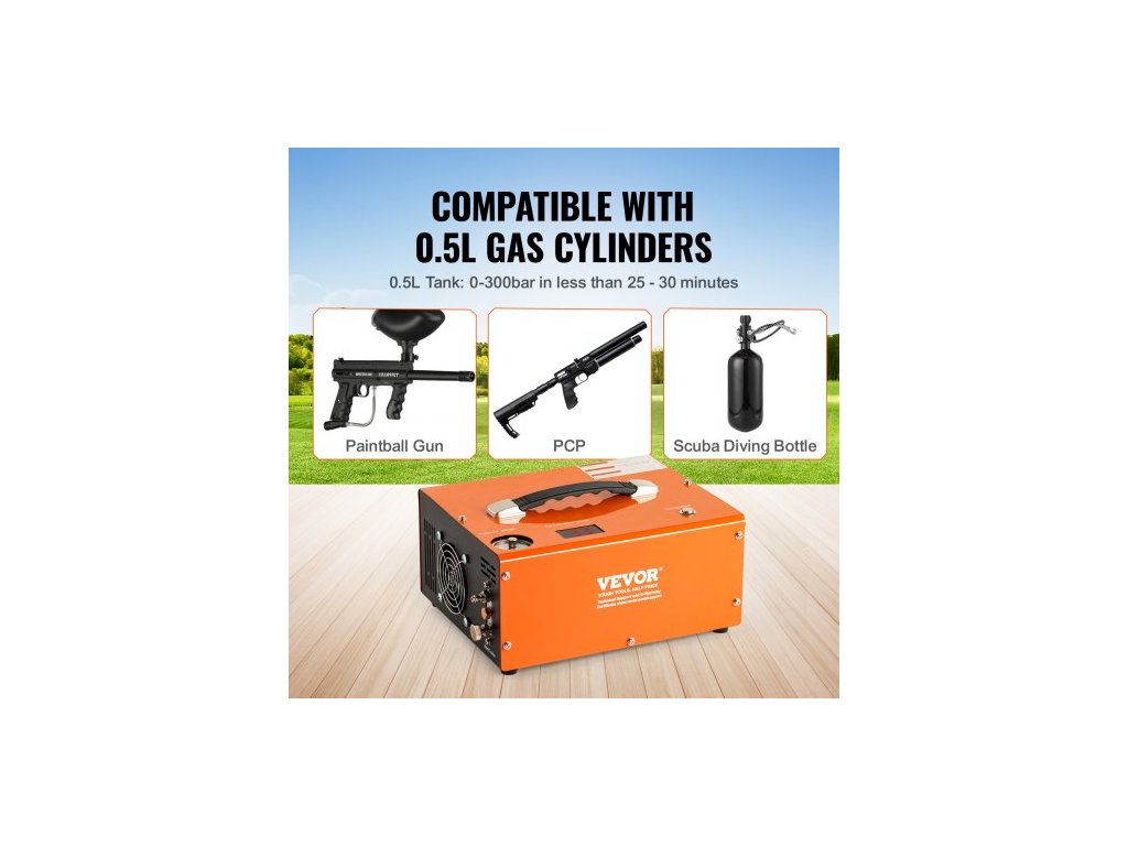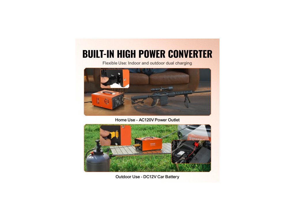 Vzduchový kompresor PCP, přenosný kompresor PCP pro vzduchovku 4500 PSI s vestavěným měničem, automatické zastavení | DC12V/AC230V | Bezolejový a bezvodý kompresor na paintballovou lahev pro vzduchovku, potápěčskou lahev