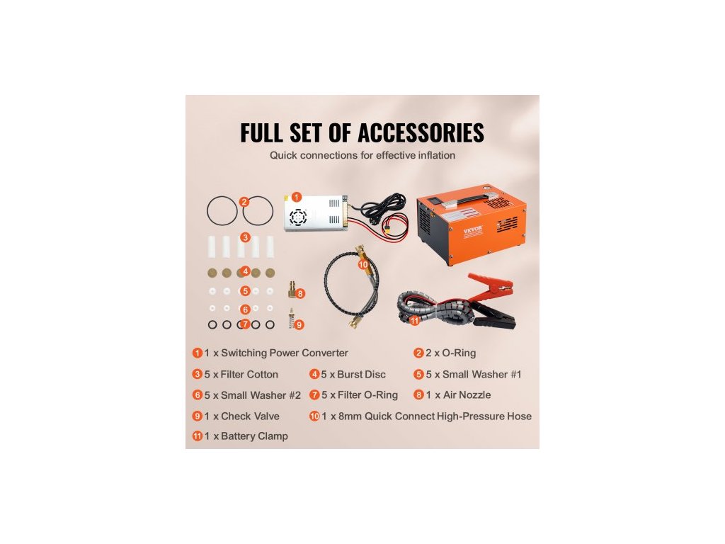 Vzduchový kompresor PCP, přenosný kompresor PCP pro vzduchovky 4500 PSI/30 MPa s externím měničem, DC12V, AC230V | Bez oleje a vody | Manuálně zastavený kompresor pro vzduchovky, paintball a potápěčské lahve
