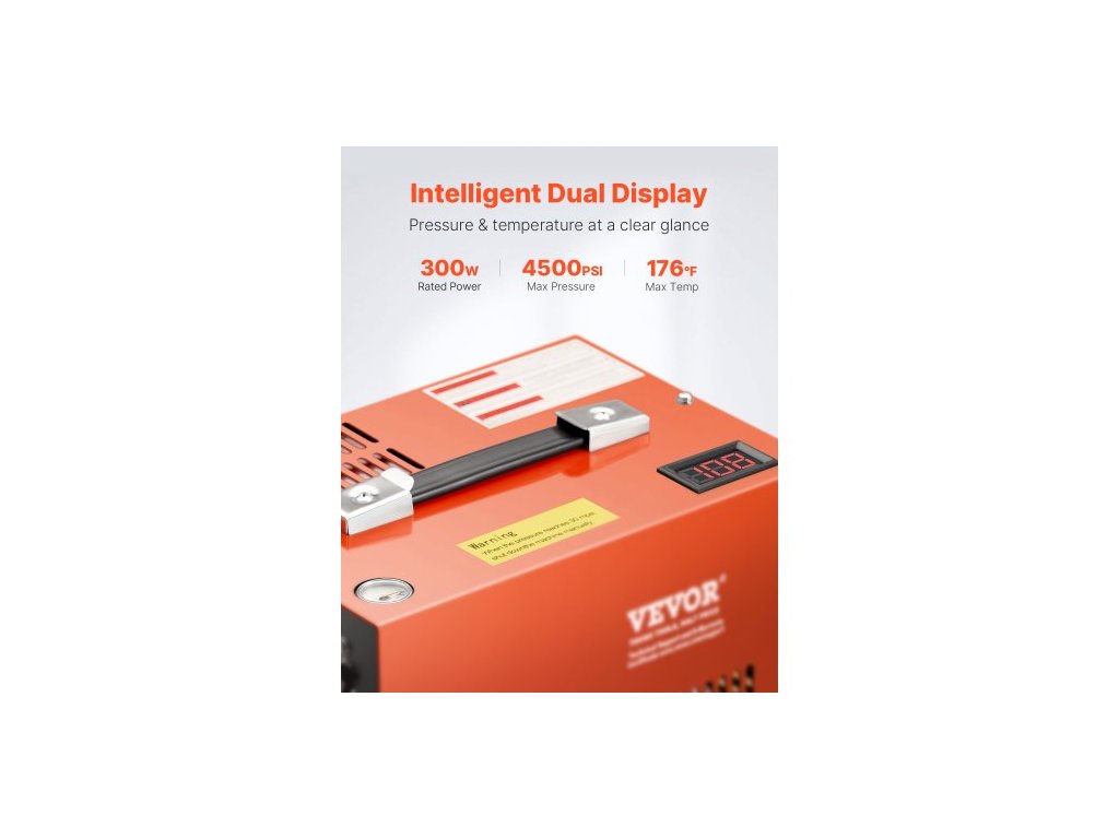 Vzduchový kompresor PCP, přenosný kompresor PCP pro vzduchovku 4500 PSI/30 MPa s vestavěným měničem a chladicím systémem ventilátoru, kompresor DC12V/AC230V s manuálním zastavením pro vzduchovku, paintball a potápěčskou nádržInteligentní duální displej
