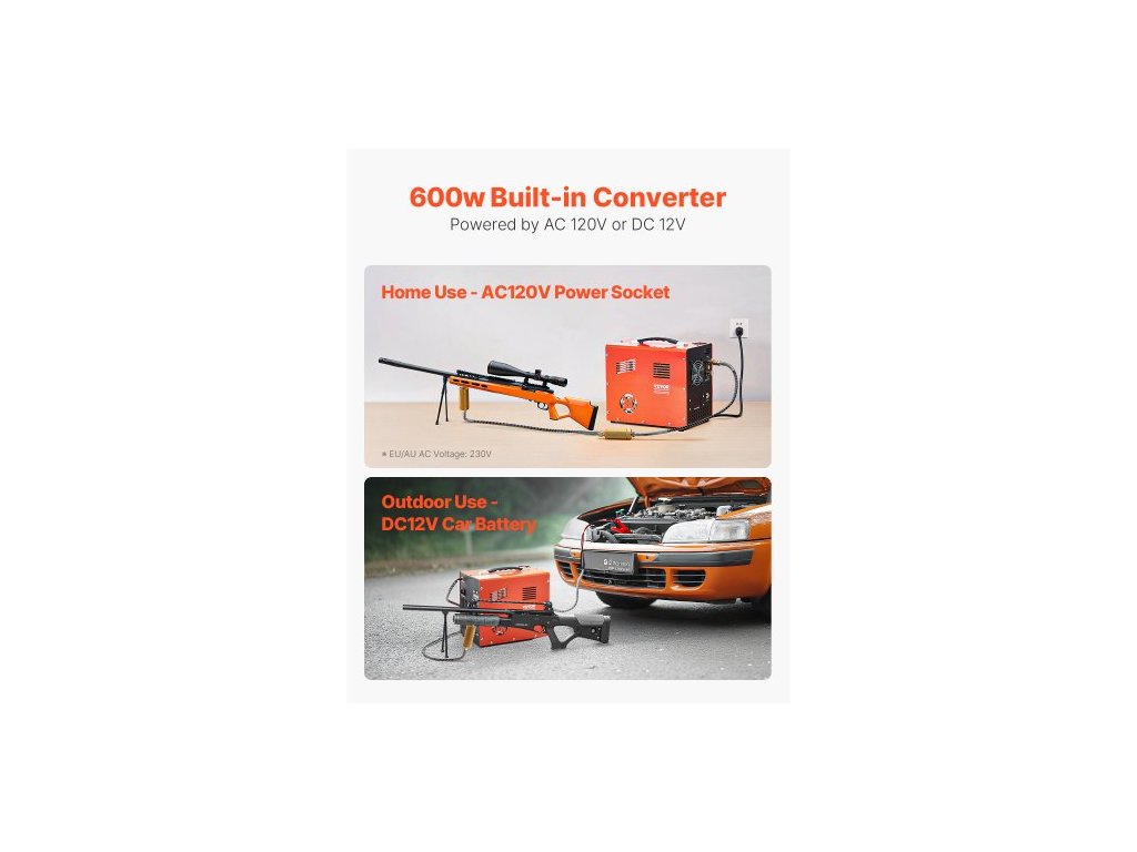 Vzduchový kompresor PCP, přenosný kompresor PCP pro vzduchovky 4500 PSI/30 MPa s vestavěným měničem a chladicím systémem ventilátoru, kompresor DC12V/AC230V s manuálním zastavením pro vzduchovky, paintball a potápěčské nádrže