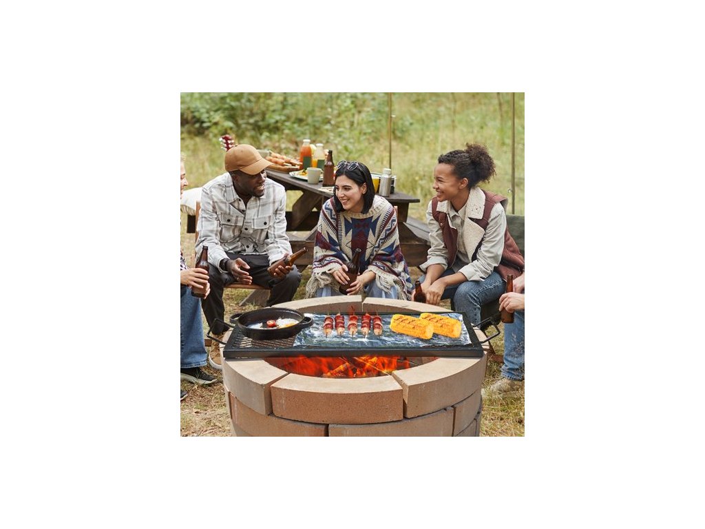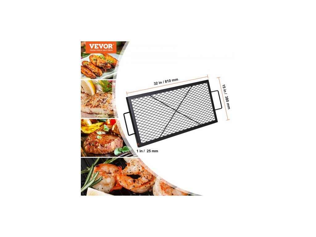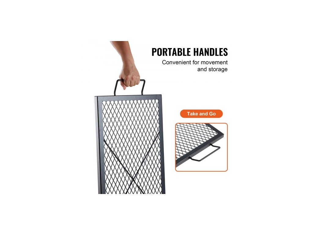 X-Marks rošt na ohniště, obdélníkový rošt na vaření, odolný ocelový rošt na táborák s rukojetí a podpěrou, drát X, přenosné kempingové nádobí pro venkovní večírky, 32 palců, černáVynikající materiál