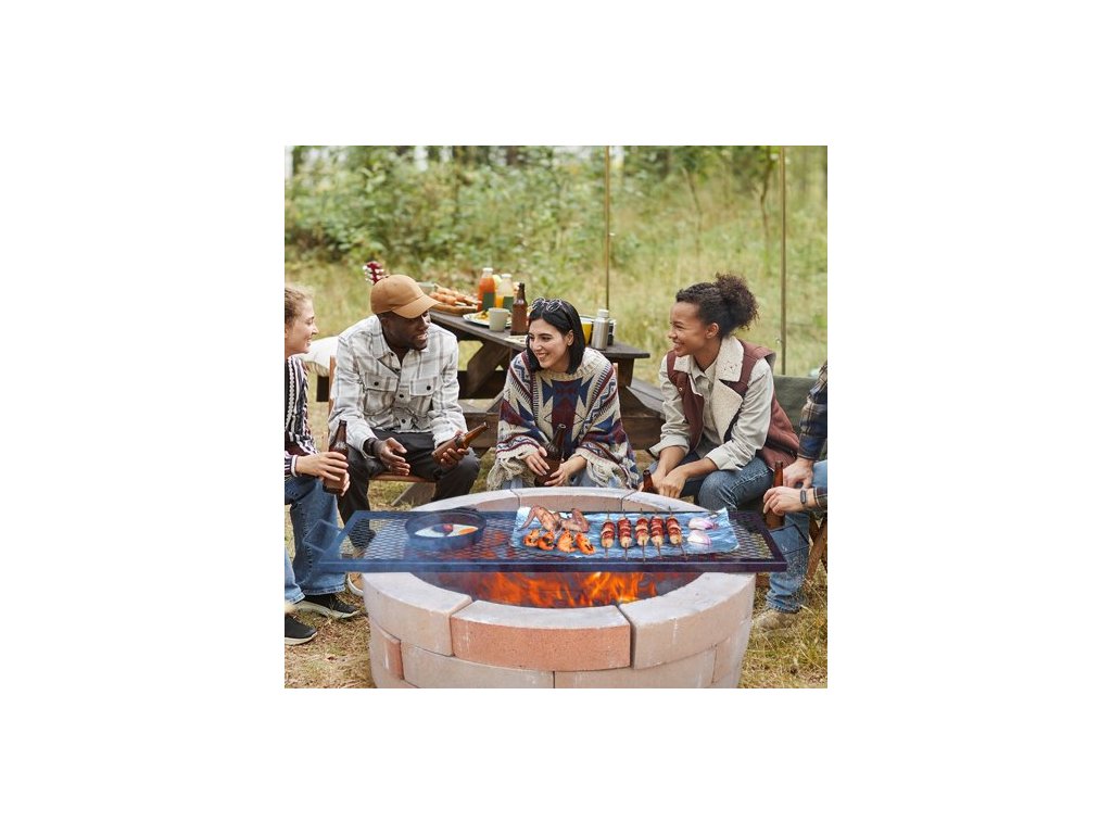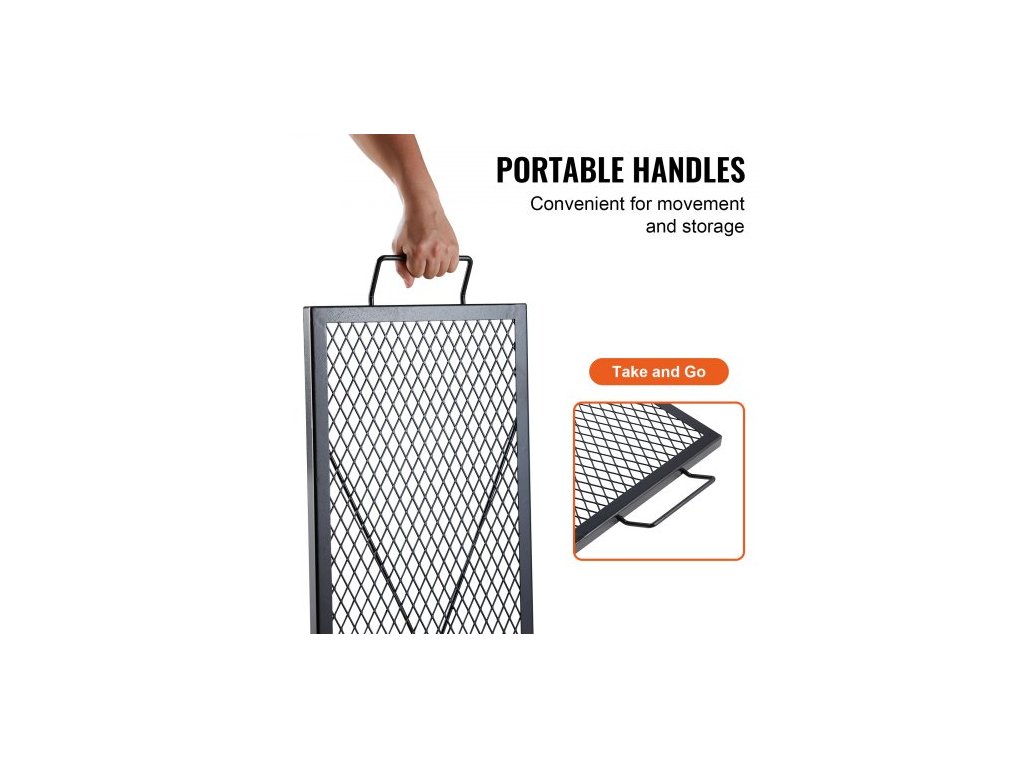 X-Marks rošt na ohniště, obdélníkový rošt na vaření, odolný ocelový rošt na táborák s rukojetí a podpěrou, X drát, přenosné kempingové nádobí pro venkovní večírky, 44 palců, černáVynikající materiál