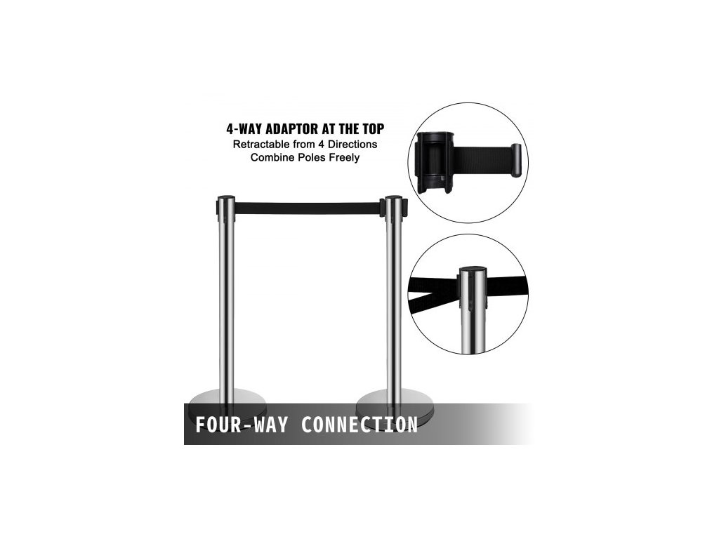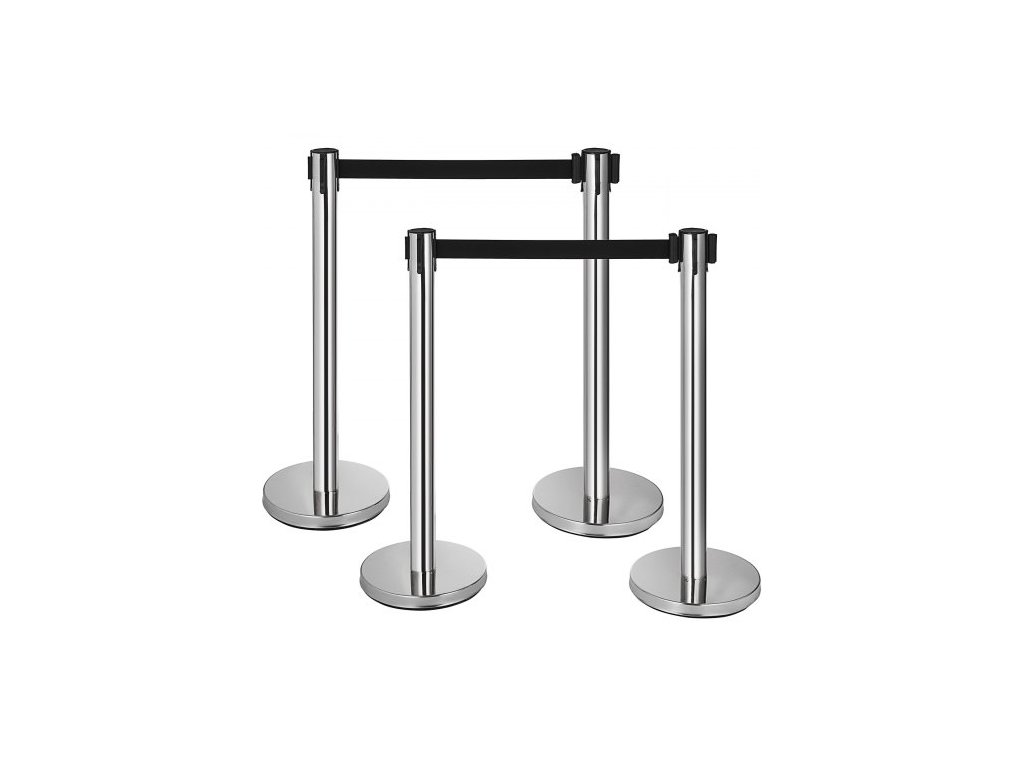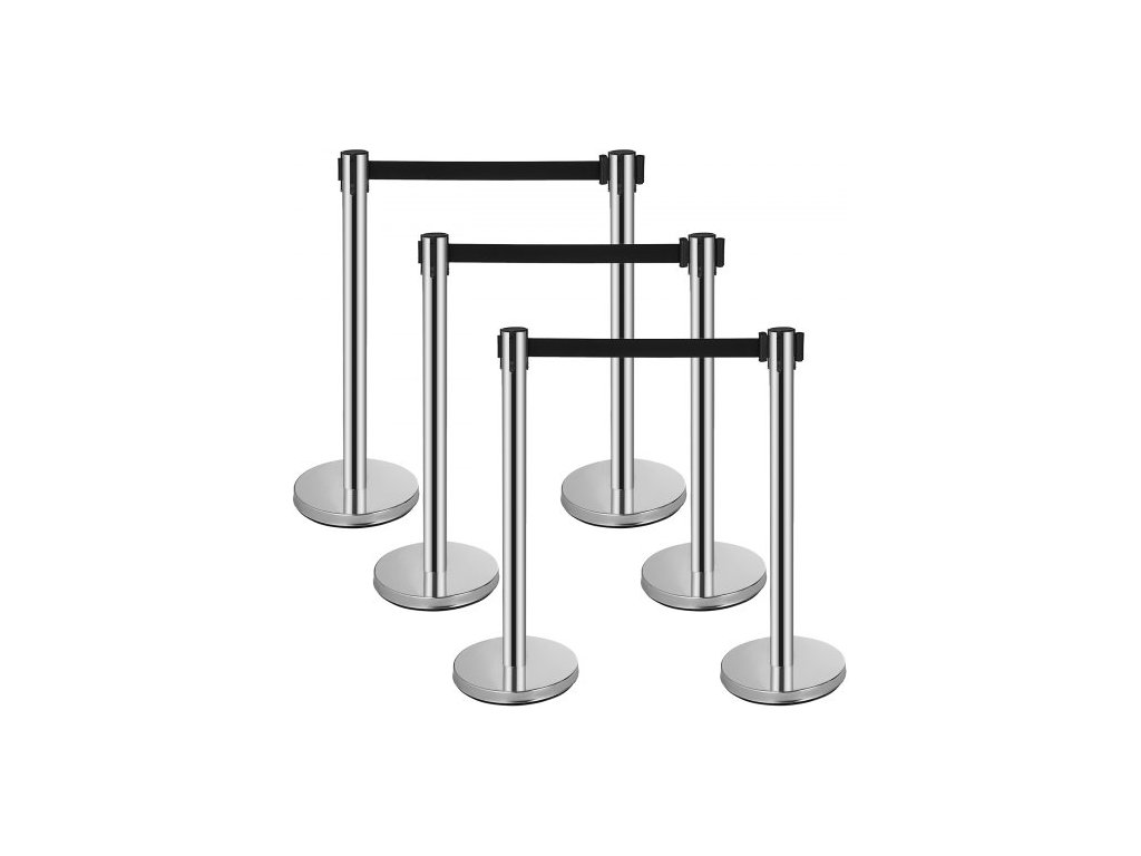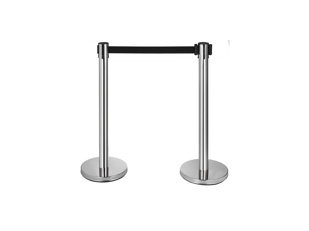zábrana proti davu, sada 6 kusů, sloupek z uhlíkové oceli s vypalovacím lakováním, zatahovací pás 3CS a plnitelná základna, dělicí přepážka pro pásovou zábranu, snadná montáž