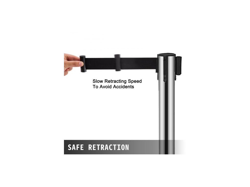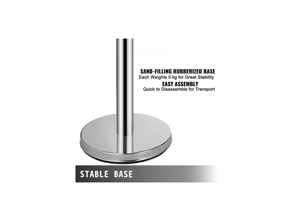 Celková výška: 90 cm, hmotnost jednotky: 6 kg, průměr základny: 32 cm, viditelná délka pásu: 1,8 m, šířka pásu: 48 mm, teleskopický pás:, sloupek pro frontu:, materiál: polyester, průměr tyče: 63 mm, délka pásu: 2 m, hmotnost základny: 5 kg, pás Barva: Černá