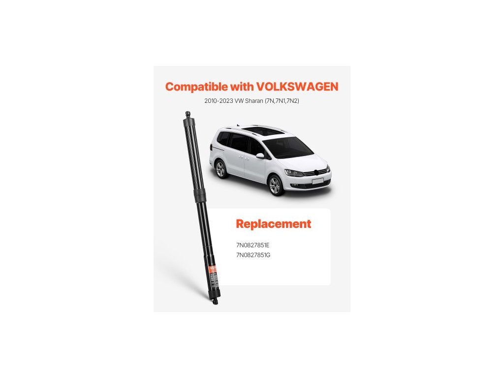 Zadní levá a pravá vzpěra elektricky ovládaných výklopných dveří, kompatibilní s vozy VW Sharan (7N, 7N1, 7N2) 2010-2023, tlumič elektrického ovládání výklopných dveří, náhrada za OE č. 7N0827851E 7N0827851G (2 ks)Vysoká kompatibilita