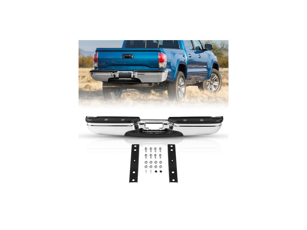 Zadní nárazník , kompatibilní s vozy Ford F250/Ford F350 Super Duty z let 1999-2007, chromovaný ocelový zadní nárazník, náhradní sestava zadního nárazníku s osvětlením registrační značky a nášlapnou clonou, pro FO1101141