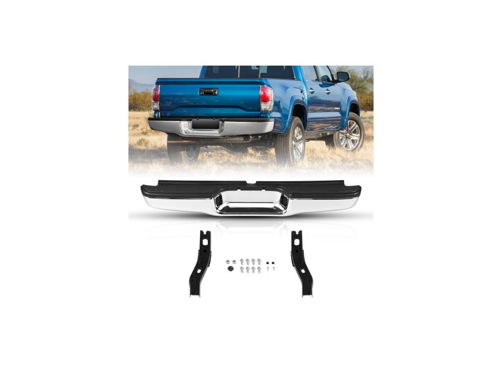 Zadní nárazník , kompatibilní s vozy Toyota Tacoma 1995-2004, chromovaný ocelový zadní nárazník, náhradní sestava zadního nárazníku s osvětlením registrační značky a nášlapnou plochou, bez otvorů pro senzory, pro TO1102215