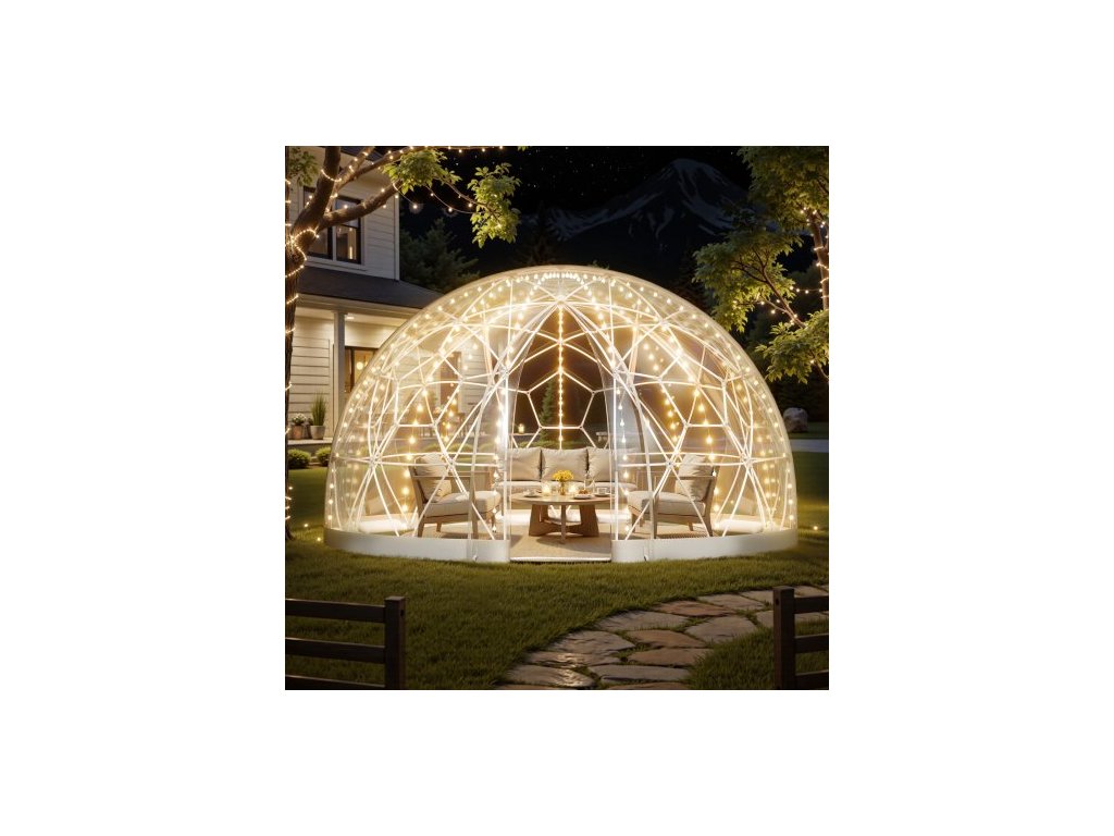 Zahradní kupolovitý stan , 2,9 x 1,75 m, venkovní průhledný bublinový stan pro 2-4 osoby, vodotěsný geodetický kupolovitý skleník s oknem, PVC iglú stany pro zahradu, terasu, kempování, párty, svatbu