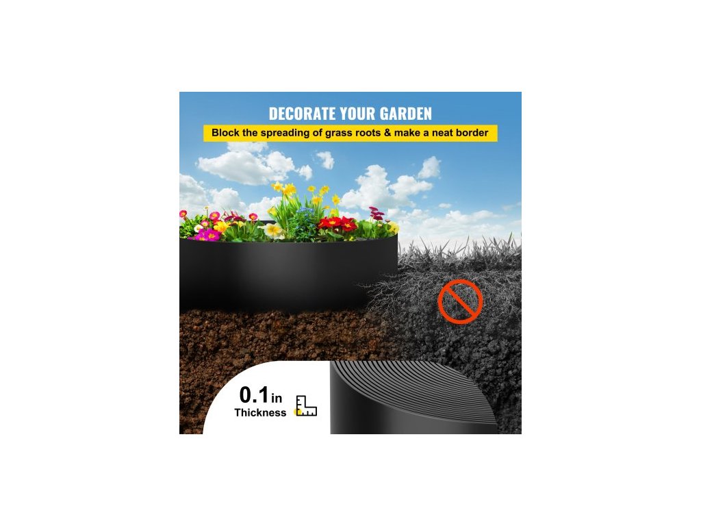 Zahradní obruba , hloubka 25,4 cm, celková délka 45,7 m, recyklovaná spirálová terasová deska z HDPE, flexibilní ohýbaná obruba pro úpravu krajiny, trávníku, zahrady, dvorku, proti prorůstání plevele, černáPřizpůsobitelná obruba trávníku
