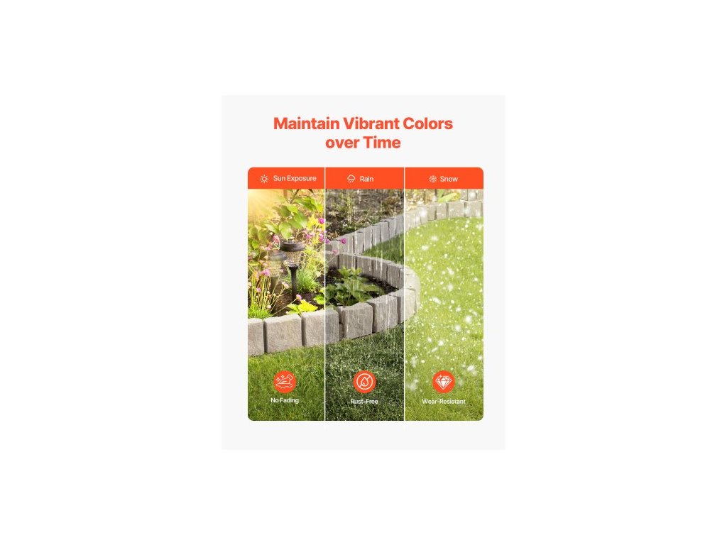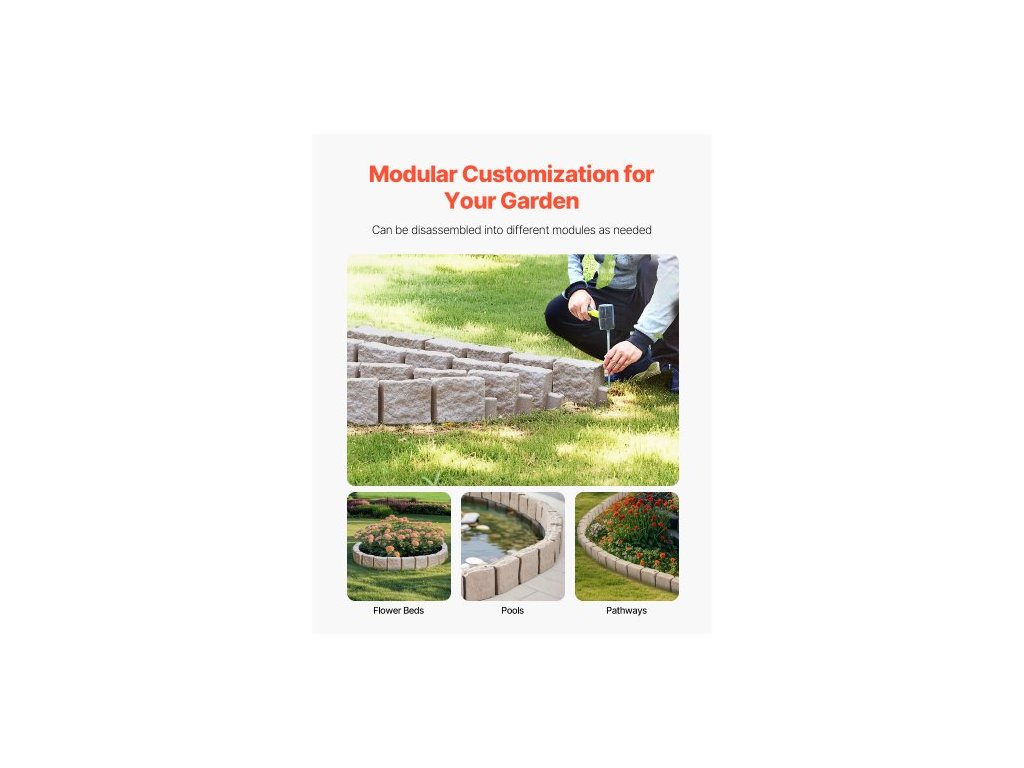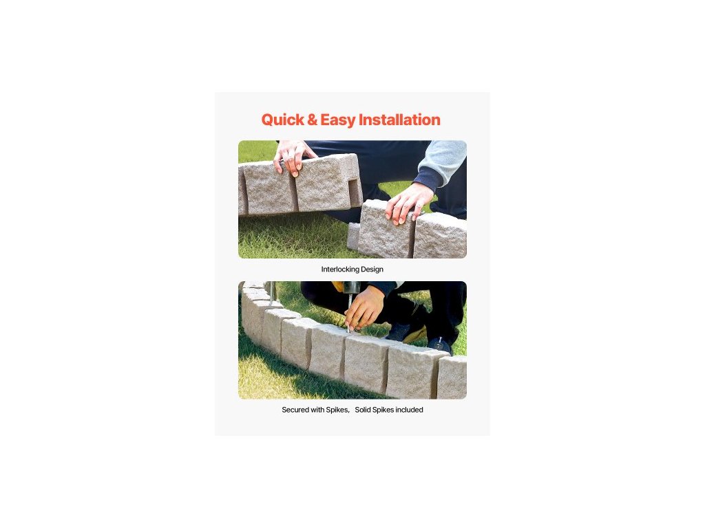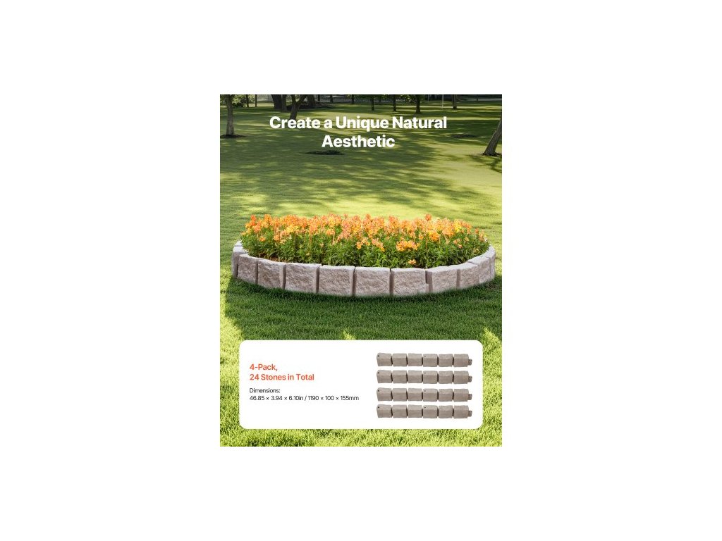 Zahradní lemování z umělého kamene, 46,8 x 3,9 palce, realistické lemování trávníku, flexibilní zahradní lemování o velikosti cihly s kotvicími hroty, odolné proti blednutí, hnědéVzhled přírodního kamene