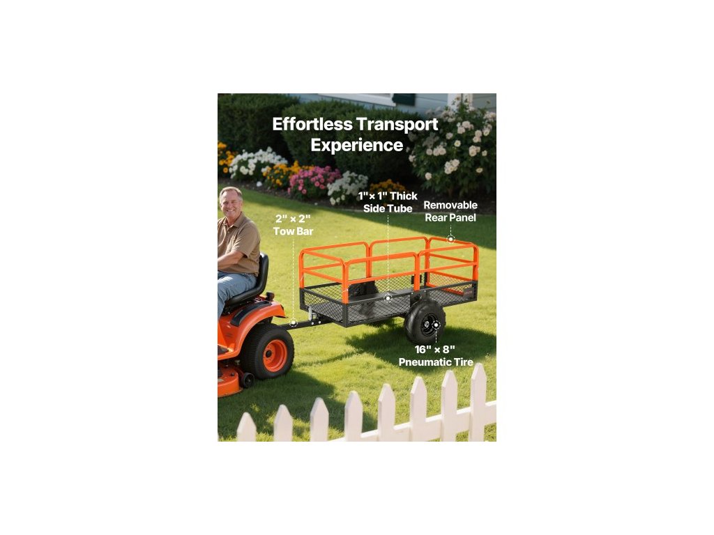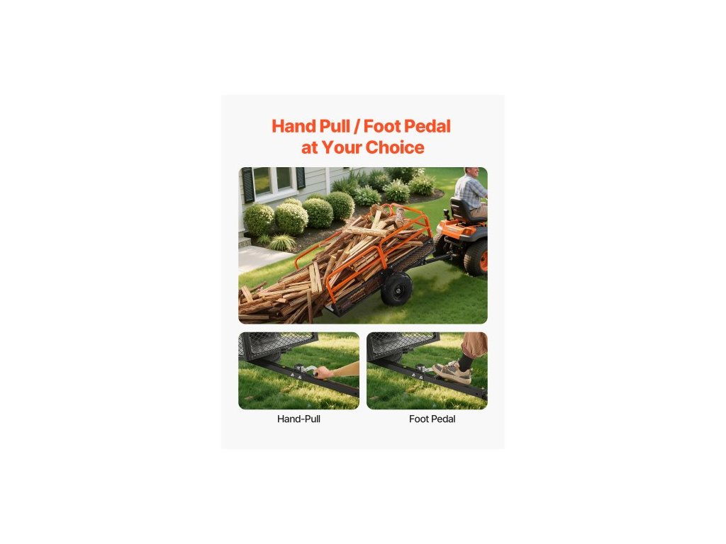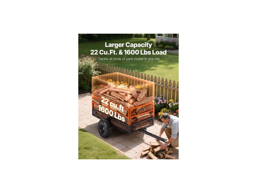 Zahradní přívěs , 22 krychlových stop & 725 kg, Přívěs pro čtyřkolku/UTV, Tažné ocelové sklápěcí přívěsy, Odnímatelný zadní panel, Vysoce odolné tažné přívěsy pro sekačku na trávu, traktor a zahradní odpadVšestranná kompatibilita