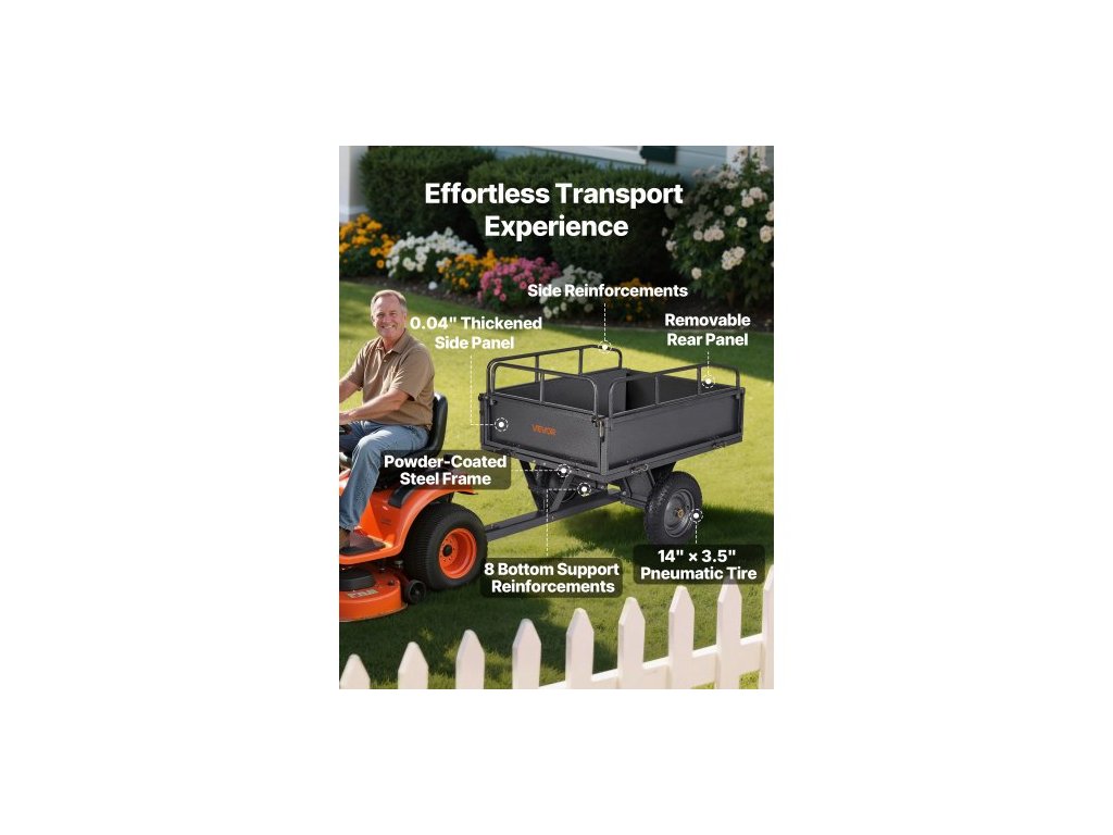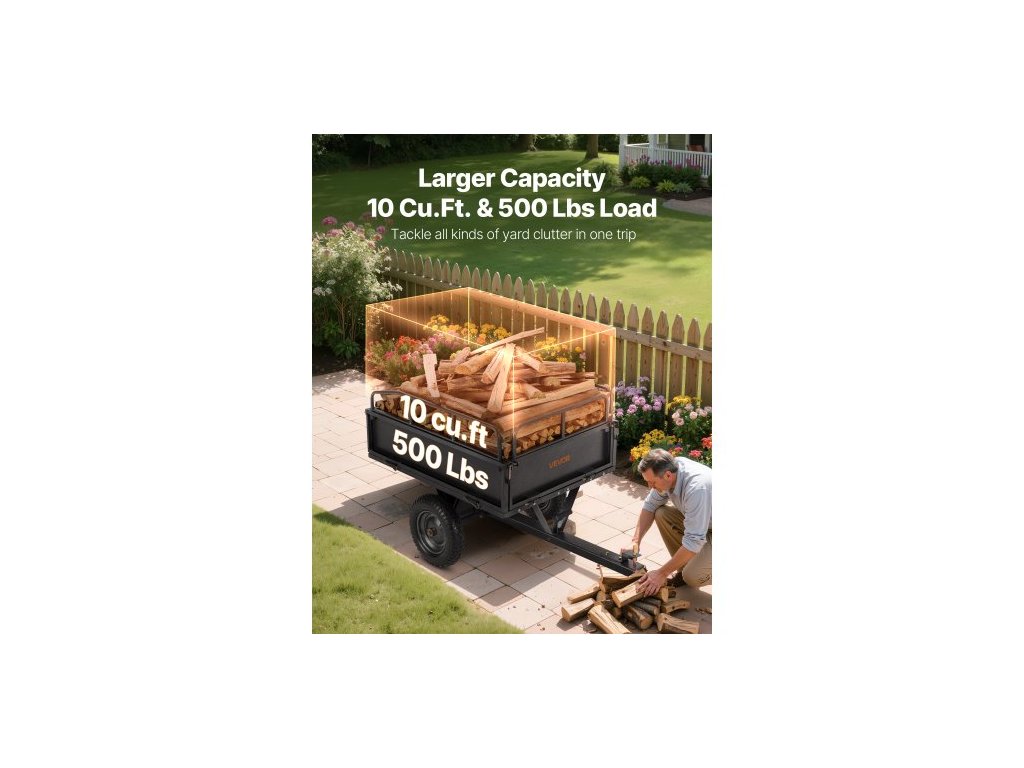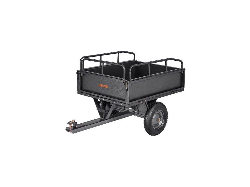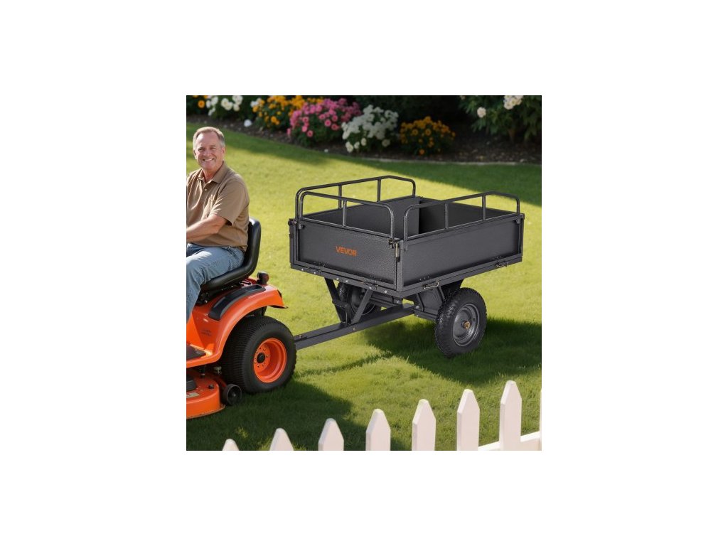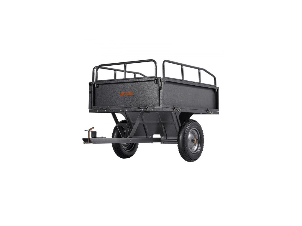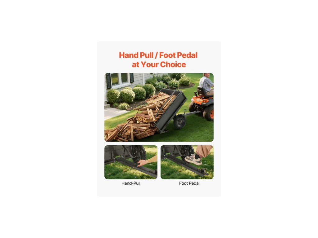 Zahradní přívěs , objem 10 kubických stop a nosnost 227 kg, přívěs pro přepravu čtyřkolek a UTV, tažný ocelový sklápěcí vozík s 14" pneumatikami, ruční nebo nožní ovládání, těžký zahradní přívěs pro traktor se sekačkou na trávuVšestranná kompatibilita