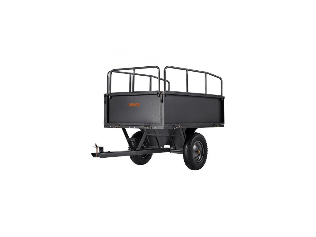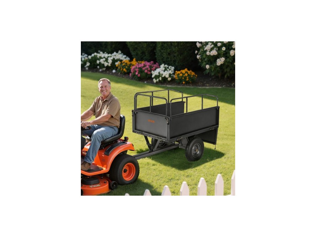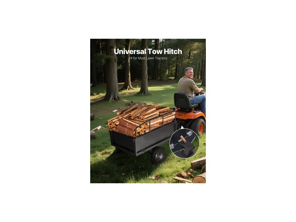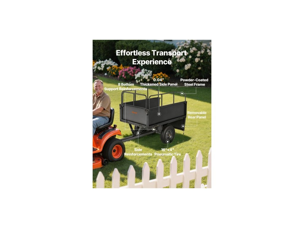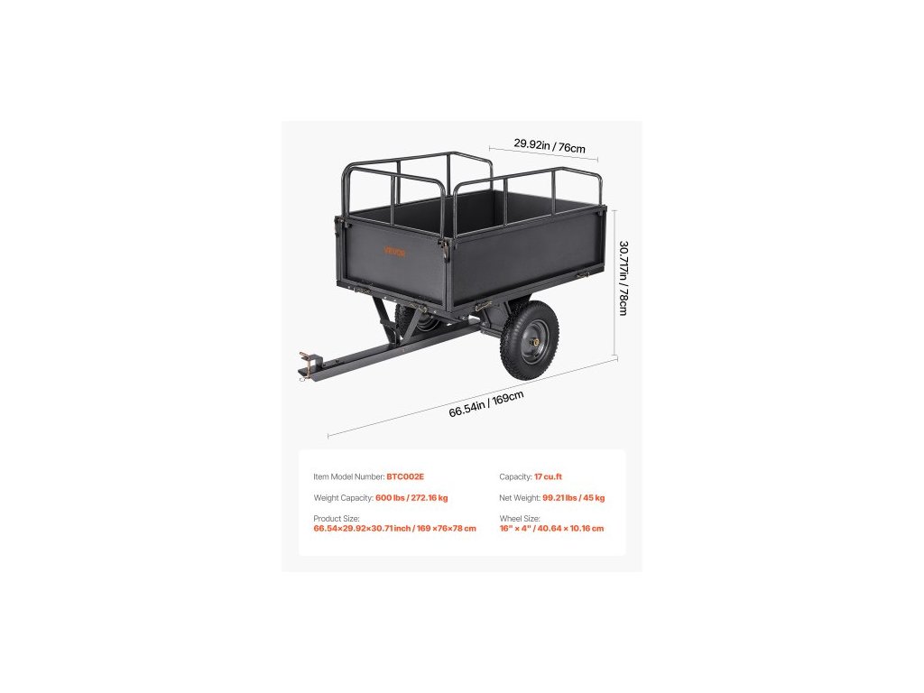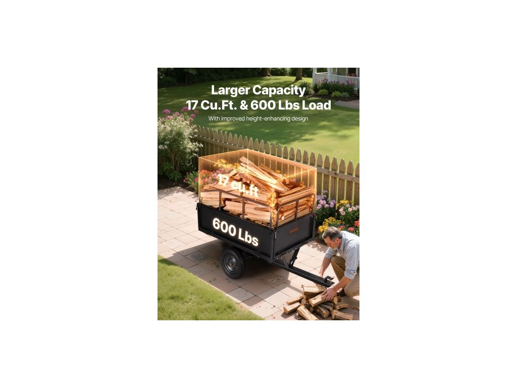 Zahradní přívěs , objem 17 kubických stop a nosnost 272 kg, přívěs pro přepravu čtyřkolek a UTV, tažný ocelový sklápěcí vozík s 16" pneumatikami, ruční nebo nožní ovládání, těžký zahradní přívěs pro traktor se sekačkou na trávuVšestranná kompatibilita