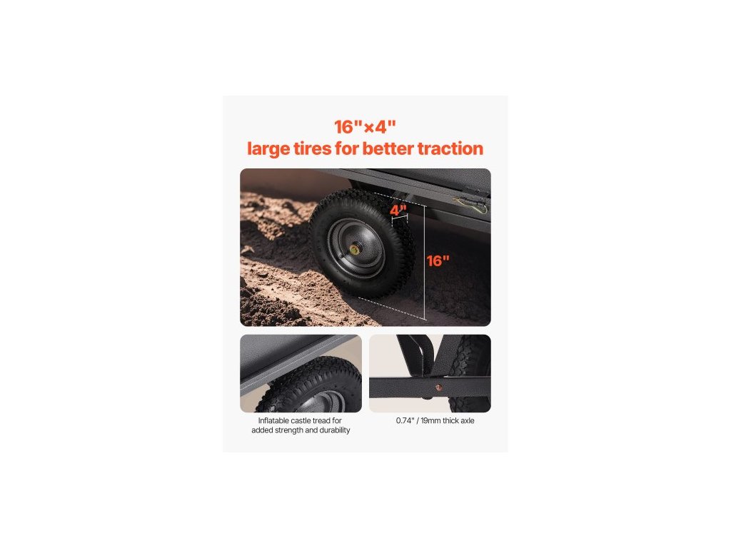 Zahradní přívěs , objem 17 kubických stop a nosnost 272 kg, přívěs pro přepravu čtyřkolek a UTV, tažný ocelový sklápěcí vozík s 16" pneumatikami, ruční tah nebo nožní pedál, těžký přívěs pro sekačku na trávu a traktor