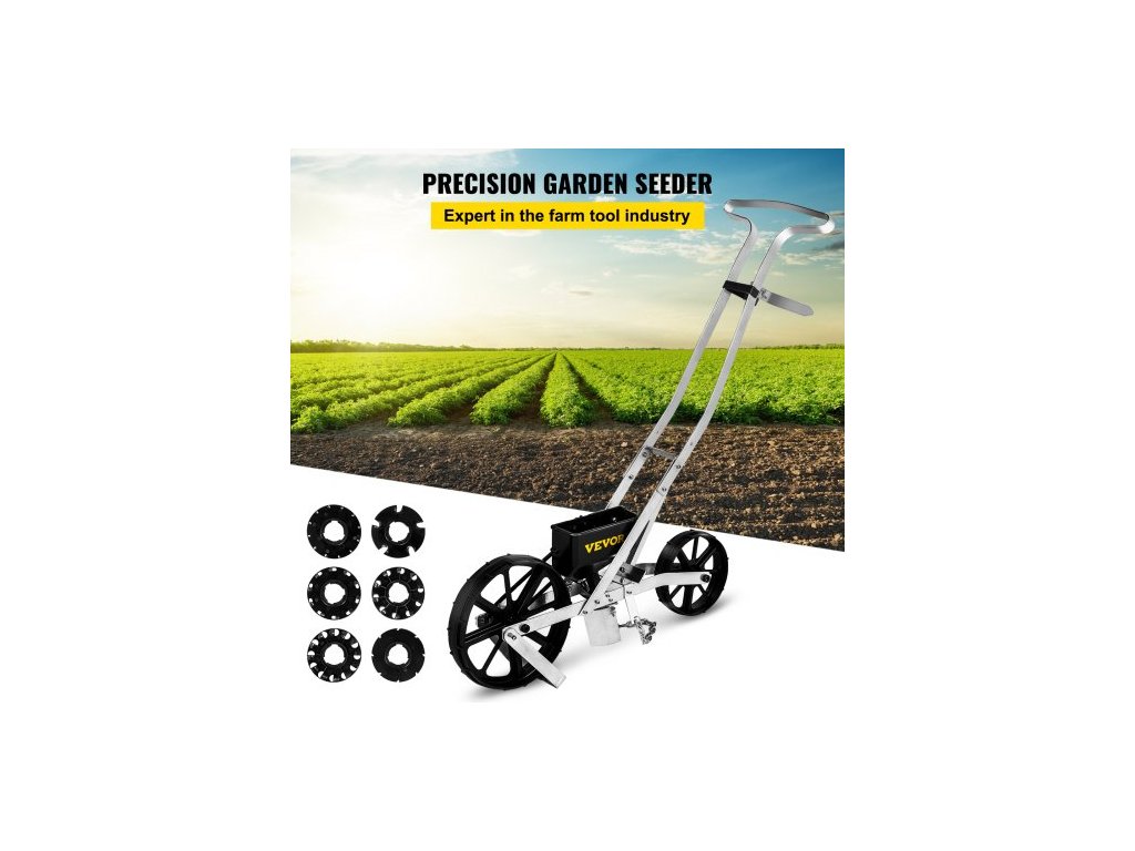 Zahradní secí stroj , kovový přesný zahradní secí stroj s 6 výsevními deskami, ruční secí stroj na řádkové plodiny, ruční rozmetadlo trávníku pro setí semen, zemědělství na zahradě pro různá semenaVysoce účinný zahradní secí stroj