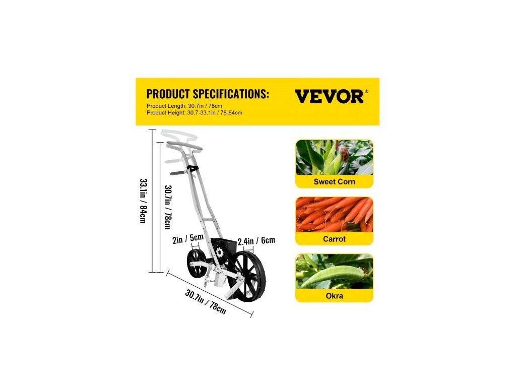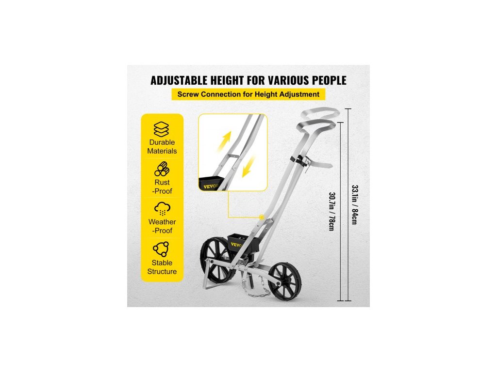 Šířka zadních kol: 5 cm,Nastavitelná výška: 78–84 cm,Model: SS-KS-0001,Hmotnost výrobku: 6,6 kg,Délka výrobku: 78 cm,Materiál: Hliník, ABS,Počet výsevních desek: 6,Šířka předních kol: 6 cm