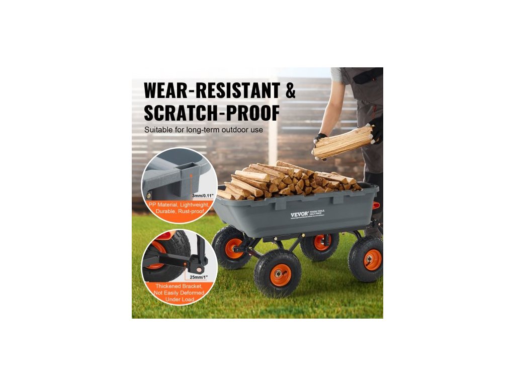 Zahradní sklápěcí vozík Poly, těžká zahradní vozíky a vozy, 800 lbs/363,6 kg, pneumatiky 10"/25,4 cm