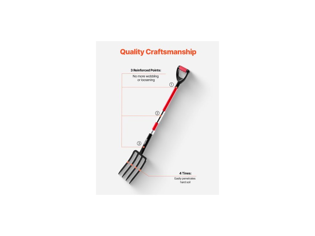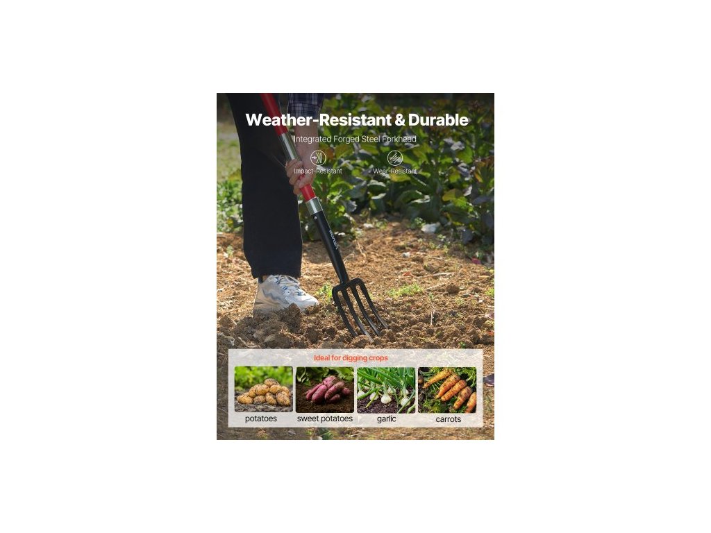 Zahradní vidle , 4hroté zahradnické vidle s rukojetí ze skelných vláken, 45palcové robustní rycí vidle s Y rukojetí, kované ocelové rýcí vidle na seno, brambory, kompostování, přesazování a provzdušňováníSnadné a pohodlné použití
