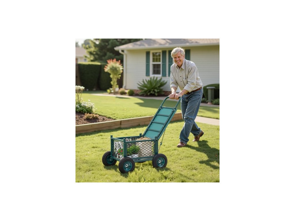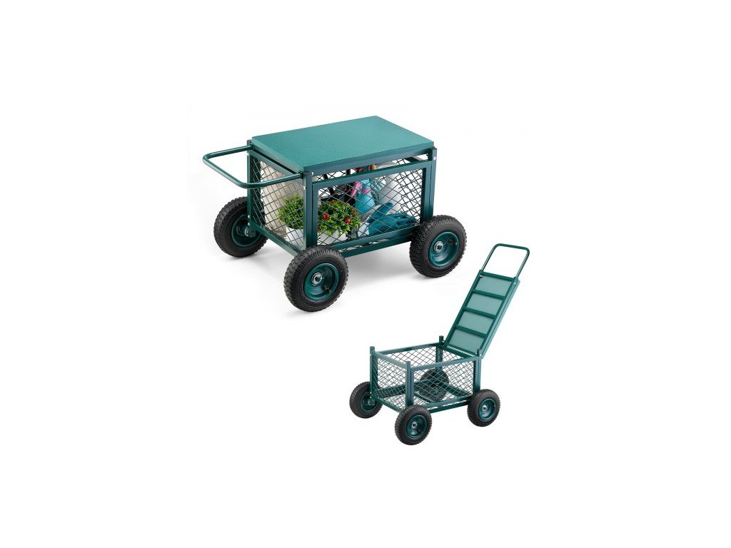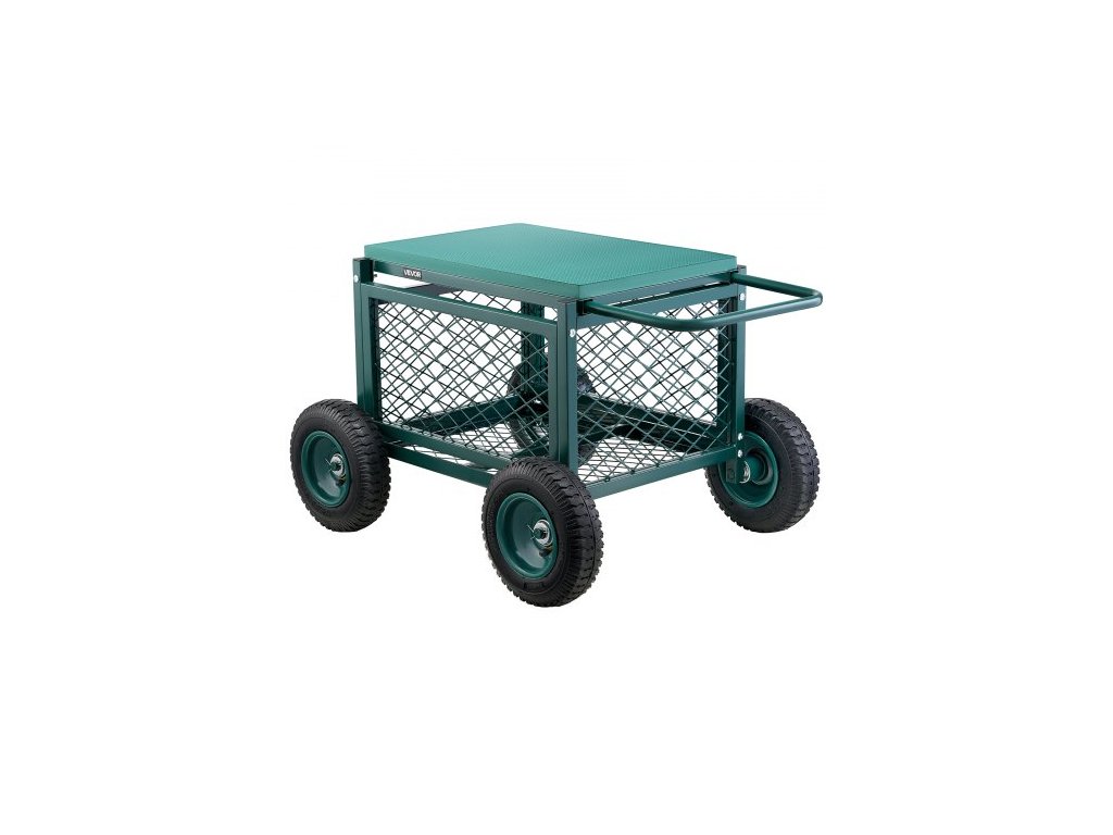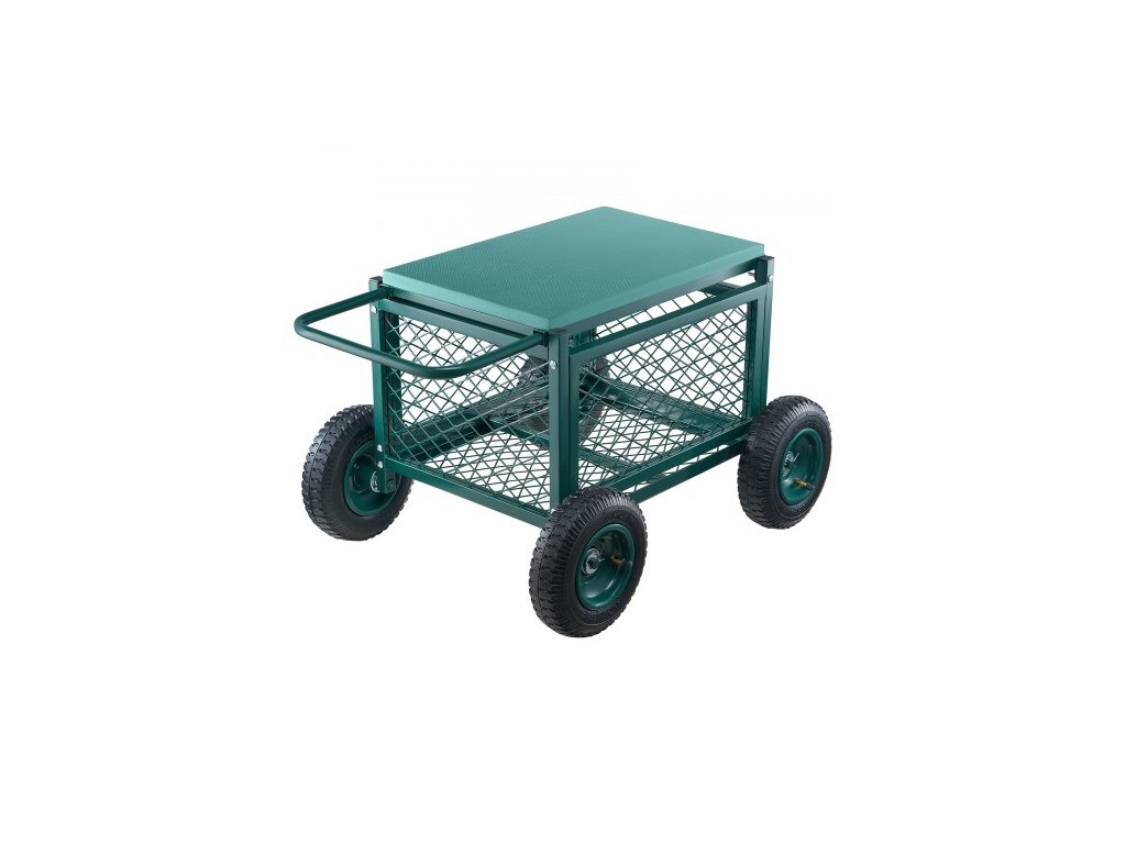 Zahradní vozík s kolečky a sedákem, kovové pracovní sedátko s kolečky, nosnost až 181 kg, odolný zahradní vozík, skútr, venkovní vozík a stolička na kolečkách na trávník, terasu, dvůr