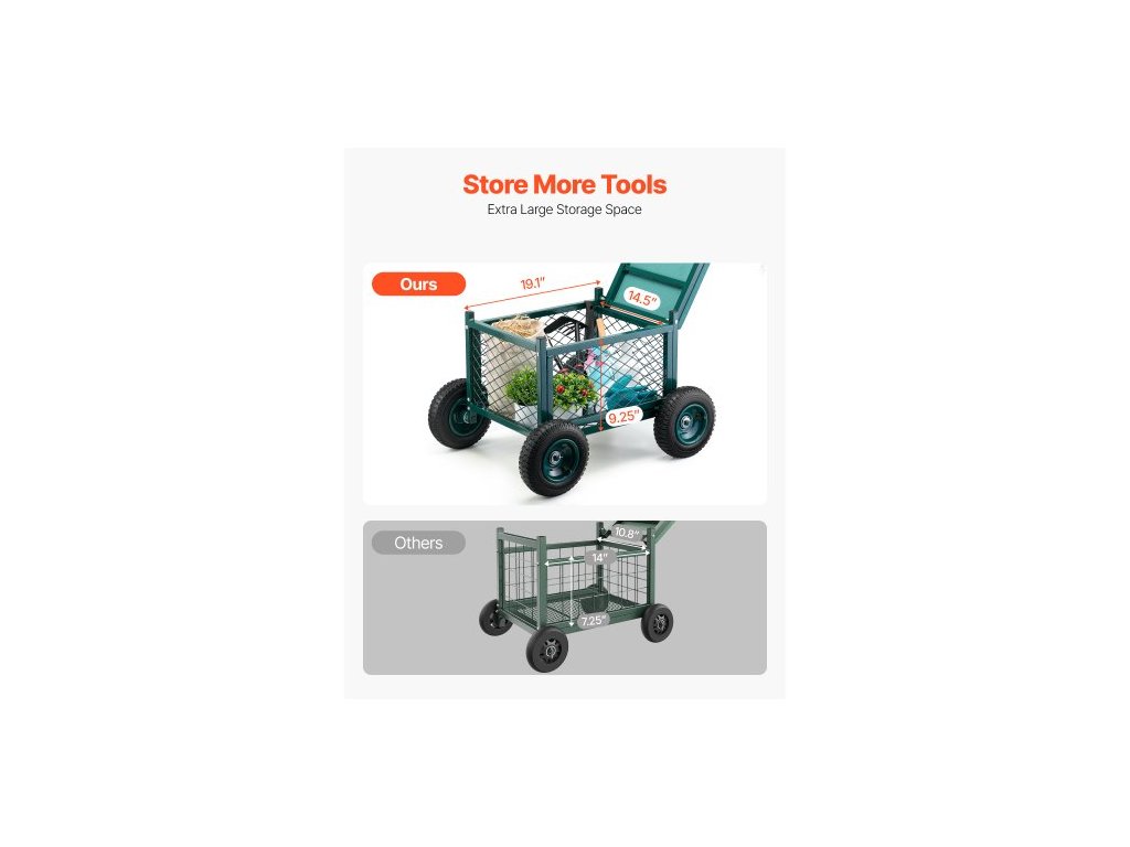 Zahradní vozík s kolečky a sedákem, kovové kolečkové pracovní sedátko s kolečky, nosnost až 181 kg, odolný zahradní vozík, koloběžka, venkovní vozík a stolička na kolečkách pro trávník, terasu, zahraduŠirší sedák