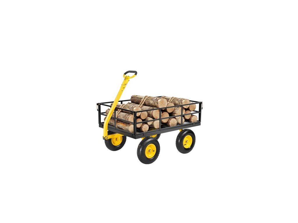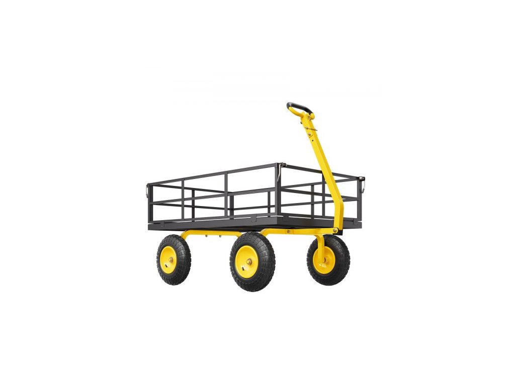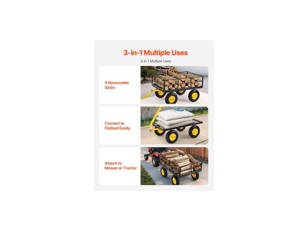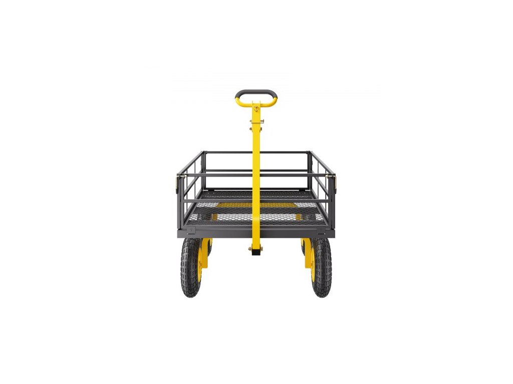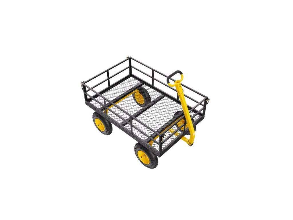 Zahradní vozík 1200 liber z oceli, odolný tažný zahradní vozík, venkovní kovový užitkový vozík 2 v 1 s 13" terénními pneumatikami, odnímatelnými síťovanými bočnicemi a otočnou rukojetí o 180°Pohodlná rukojeť