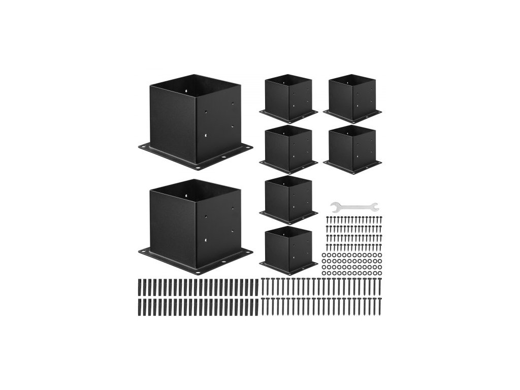 Základna sloupku 4x4, 8 ks, vnitřní rozměr 3,6x3,6 palce / 92x92 mm, konzole sloupků, odolné sloupky z uhlíkové oceli, konzole dřevěných sloupků pro zábradlí pavilonu, základní deska terasy, černáSpolehlivá opora