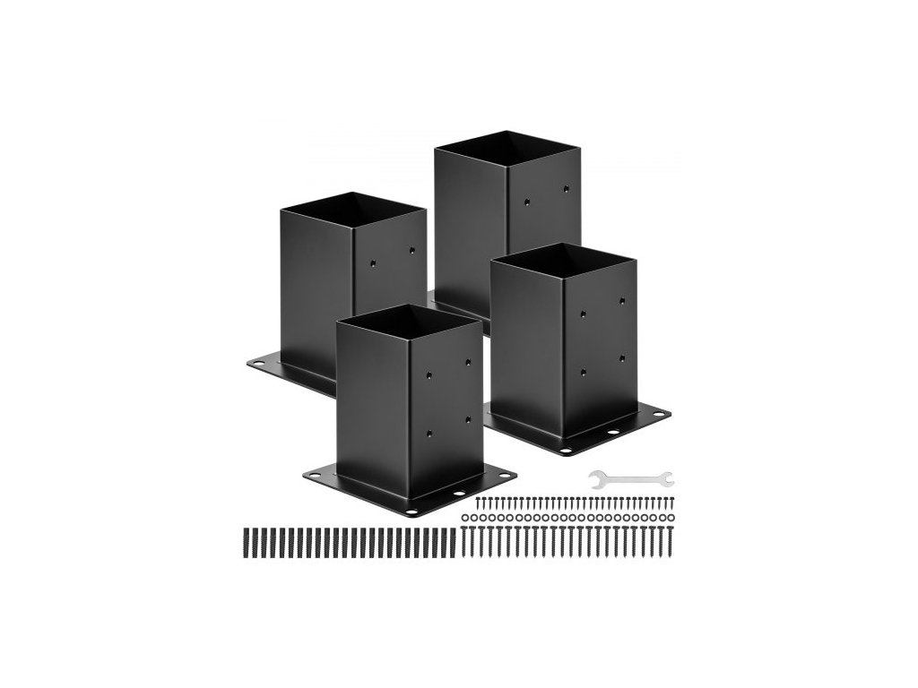 Základna sloupku 6x6, 4 ks, vnitřní rozměr 5,6x5,6 palce / 142x142 mm, konzoly sloupků, odolné sloupky z uhlíkové oceli, konzoly dřevěných sloupků pro zábradlí pavilonu, základní deska terasy, černáSpolehlivá opora