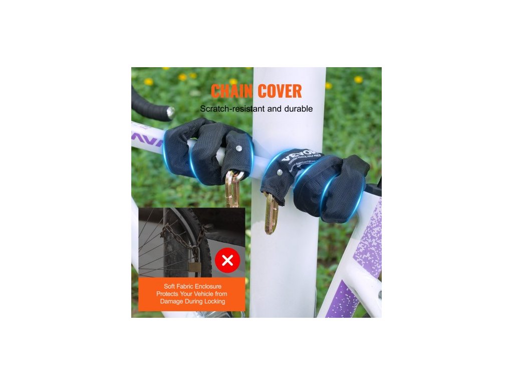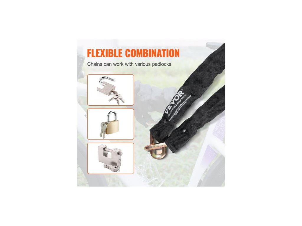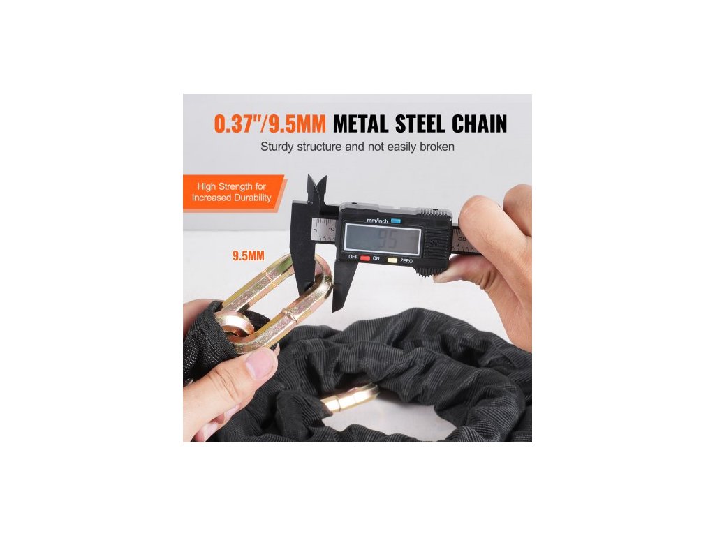 Zámek na řetěz na kolo, bezpečnostní zámek na řetěz na kolo 5,91 stop, vysoce odolný kovový ocelový zámek s ochranou proti krádeži, vysoce bezpečnostní zámky na kolo, ideální pro kolo, motocykl, skútr, jízdní kolo, dveře, plot, bránu, 9,5 mm, černý