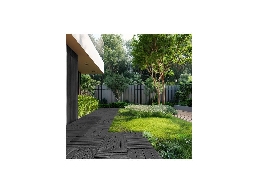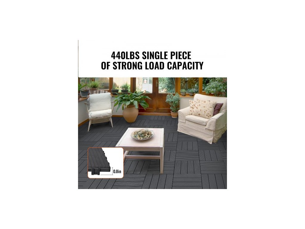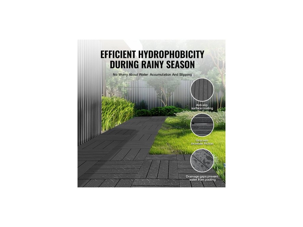 Zámkové terasové dlaždice, balení 54 kusů, 12"x12", 54 čtverečních stop plastová vodotěsná venkovní podlaha, použití za každého počasí, dlažba na terasu, verandu, u bazénu, balkon, dvůr, tmavě šedá