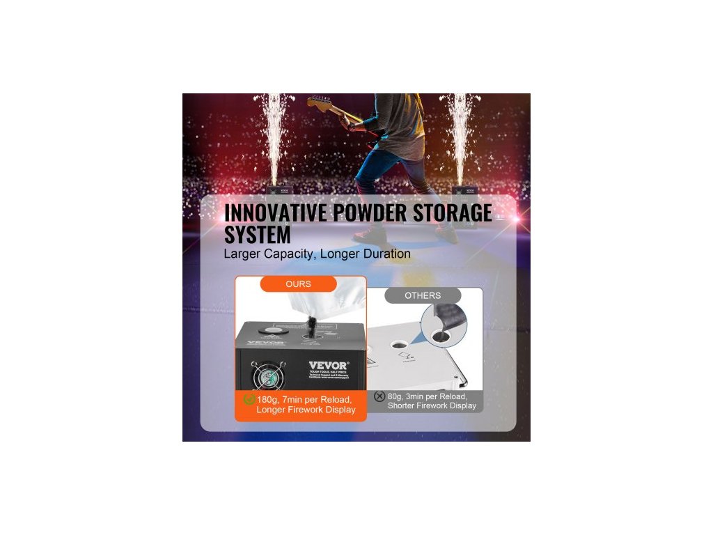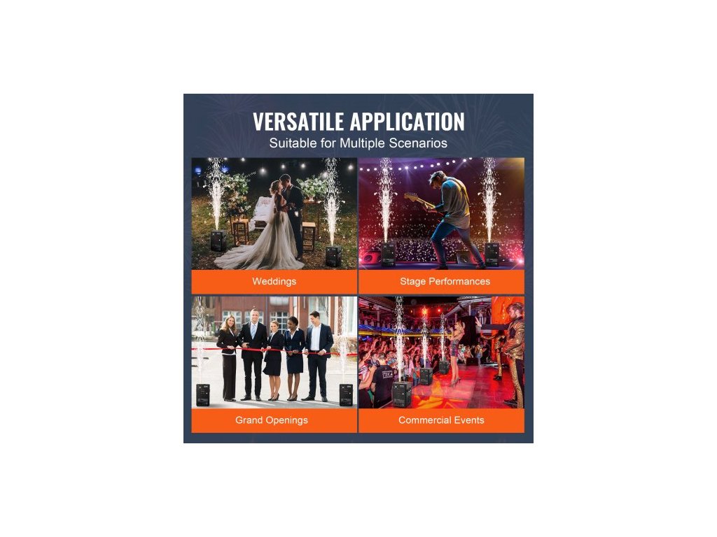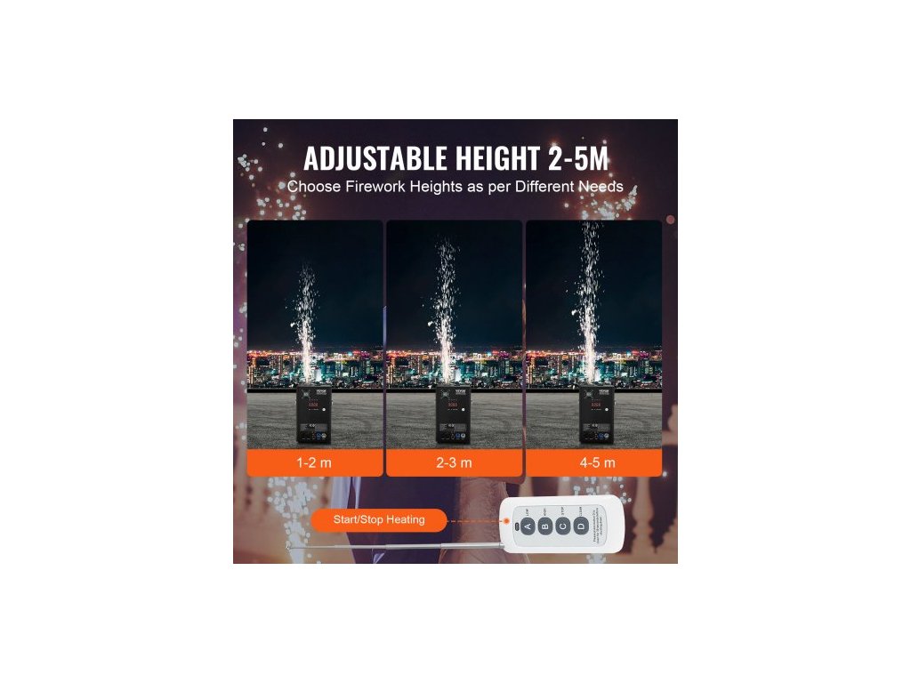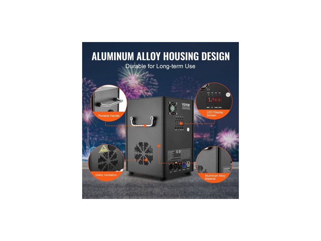 Cold Spark Machine, 2 ks ohňostrojů s výkonem 700 W, nastavitelná výška 6,6-16,4 stop, s pokročilým DMX systémem, LED obrazovkou, přenosnou rukojetí, hliníková slitina pro pódiové DJ, svatební akce, pártyČtyři nastavitelné režimy dálkového ovládání