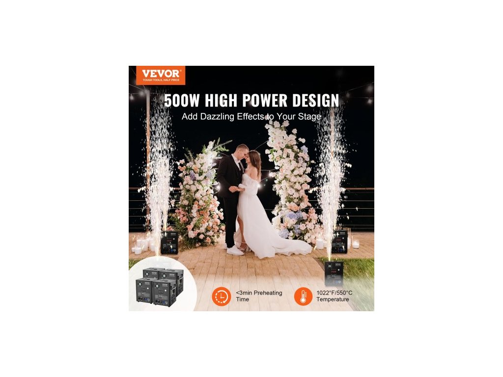 Cold Spark Machine, sada 4 ovladačů ohňostrojů s výkonem 500 W, nastavitelná výška 6,6-13 stop, s pokročilým DMX systémem, LED obrazovkou, přenosnou rukojetí, hliníková slitina pro pódiové DJ, svatební akce, pártyČtyři nastavitelné režimy dálkového ovládání