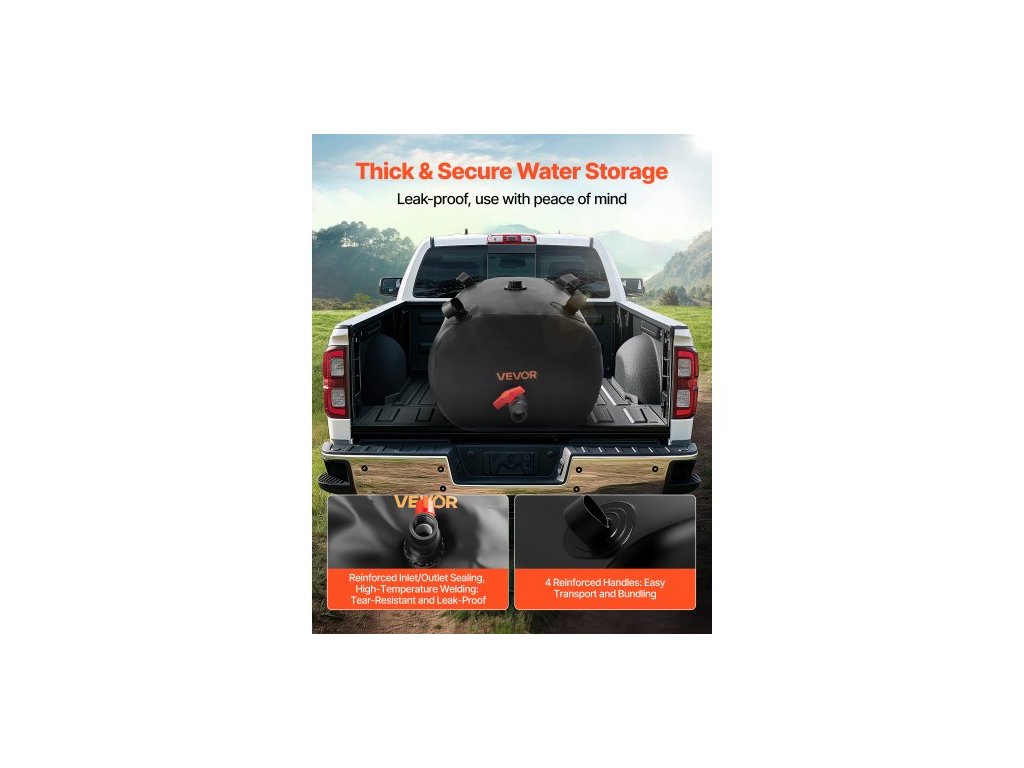 Zásobník vody, Nádrž na vodu o objemu 113 l, Měkký vak z 1000D PVC zesíleného materiálu, Skládací přenosný pro zavlažování zahrad, kempování, karavany, nouzové použití - Černá