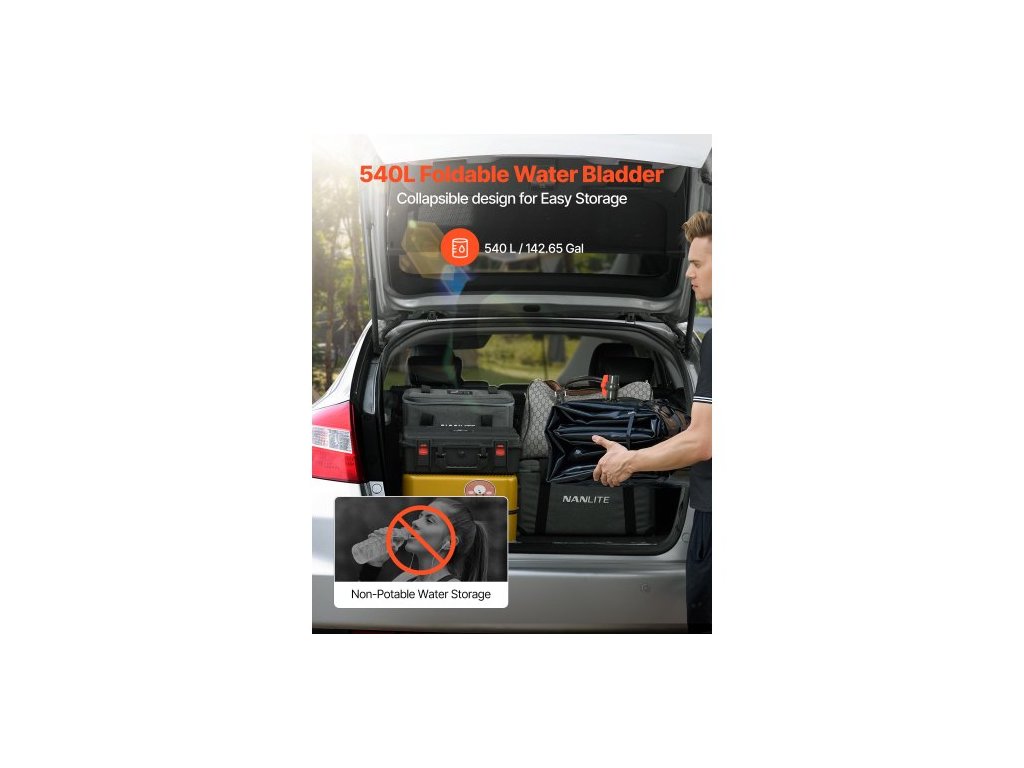 Zásobník vody, nádrž na vodu o objemu 540 l, velkokapacitní měkký vak z PVC 1000D, skládací, přenosný pro zavlažování zahrad, kempování, karavan, nouzové použití - černýObjem 142,7 galonů pro každodenní použití