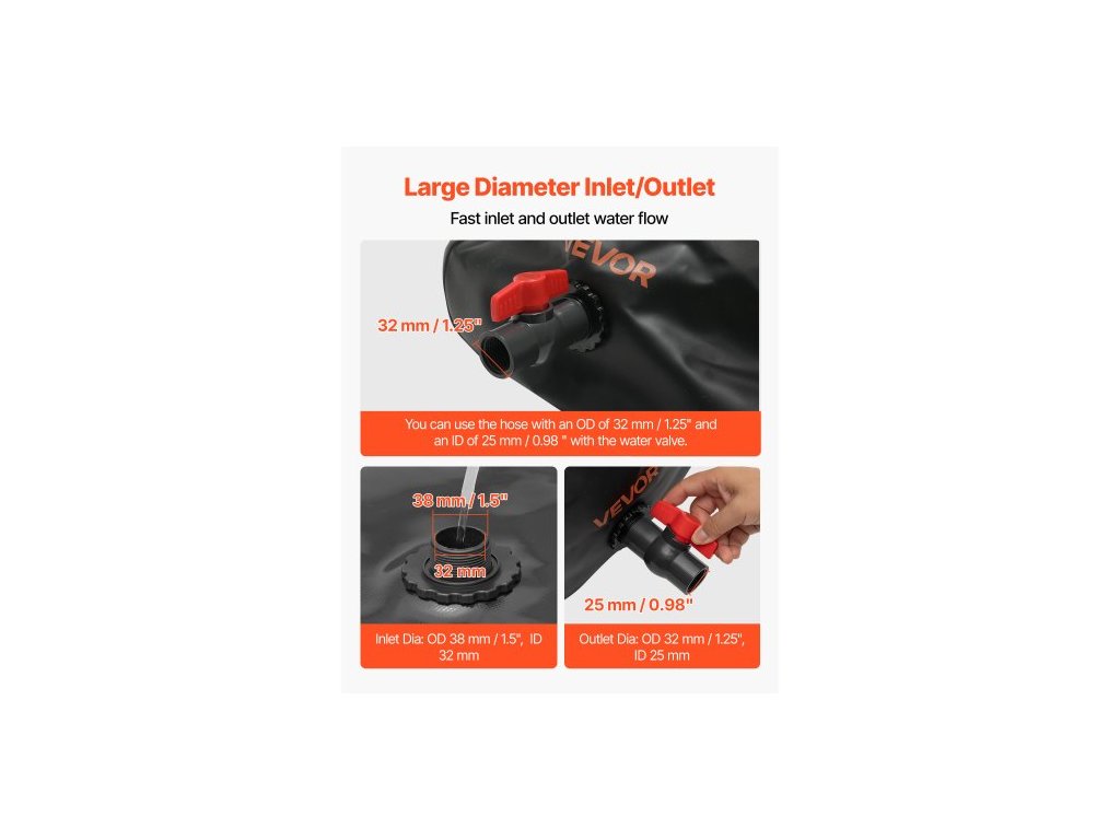 Tloušťka: 1,2 mm/0,047", Rozměry při plném objemu vody (D x Š x V): 58,3 x 34,6 x 18,9 palce / 1480 x 880 x 480 mm, Maximální kapacita: 142,65 galonů/540 l, Číslo modelu položky: WT-20540, Teplotní rozsah: -30 °C až 70 °C, Materiál: PVC, Hustota: 1000D, Hmotnost: 17,64 liber / 8 kg