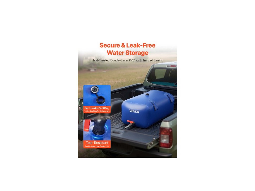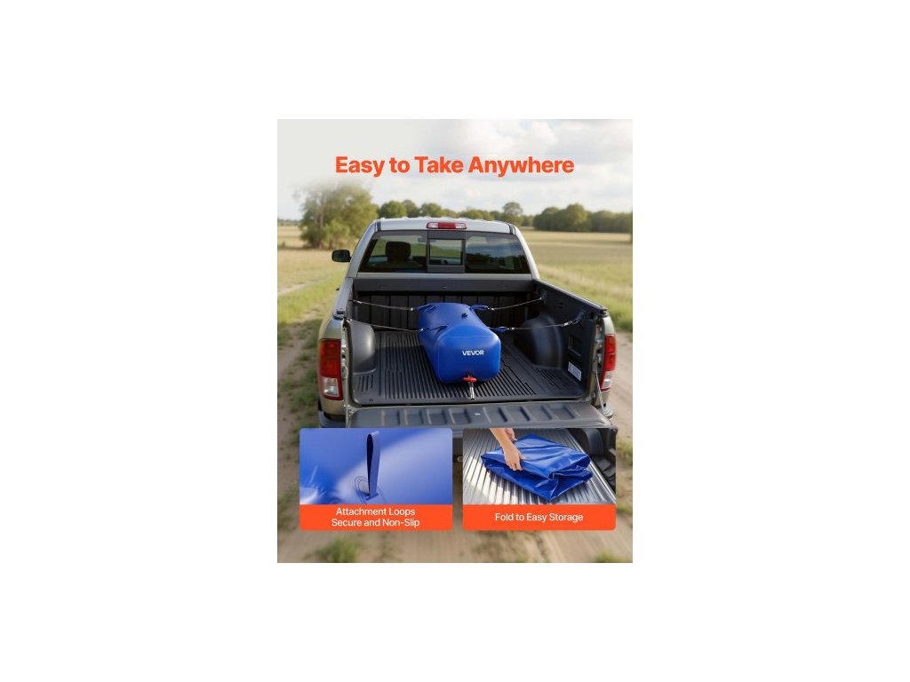 Vak na vodu 113l s velkou kapacitou, přenosná a skládací nádoba na měkkou vodu, nepropustná a odolná proti roztržení nouzová nádrž na vodu z PVC pro obytné vozy a venkovní použitíSkládací vak na vodu o objemu 30 galonů