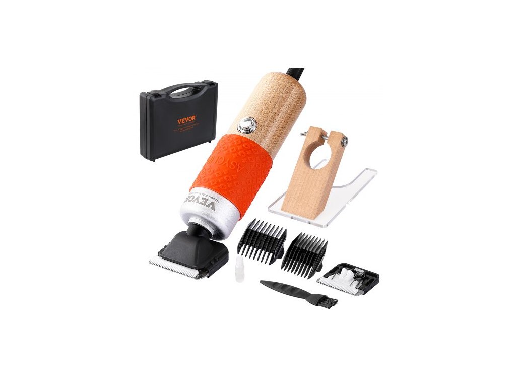 Zastřihovač koberců s vodítkem pro stříhání, elektrický řezbář koberců s nastavitelnou rychlostí 200 W, nůžky na všívání se 2 čepelemi, nůžky na řezbářství koberců s dřevěnou rukojetí pro ručně vyráběné a všívané koberce
