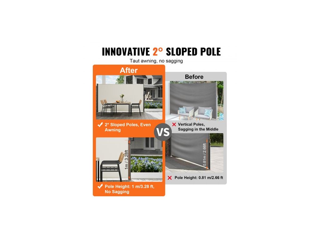 Zatahovací boční markýza, venkovní zástěna na ochranu soukromí 71''x 138'', 180g polyesterová voděodolná zatahovací zástěna na terasu, UV 30+ dělicí stěna, větrná clona na terasu, dvůr, balkon, béžováVysoce pevný železný rám