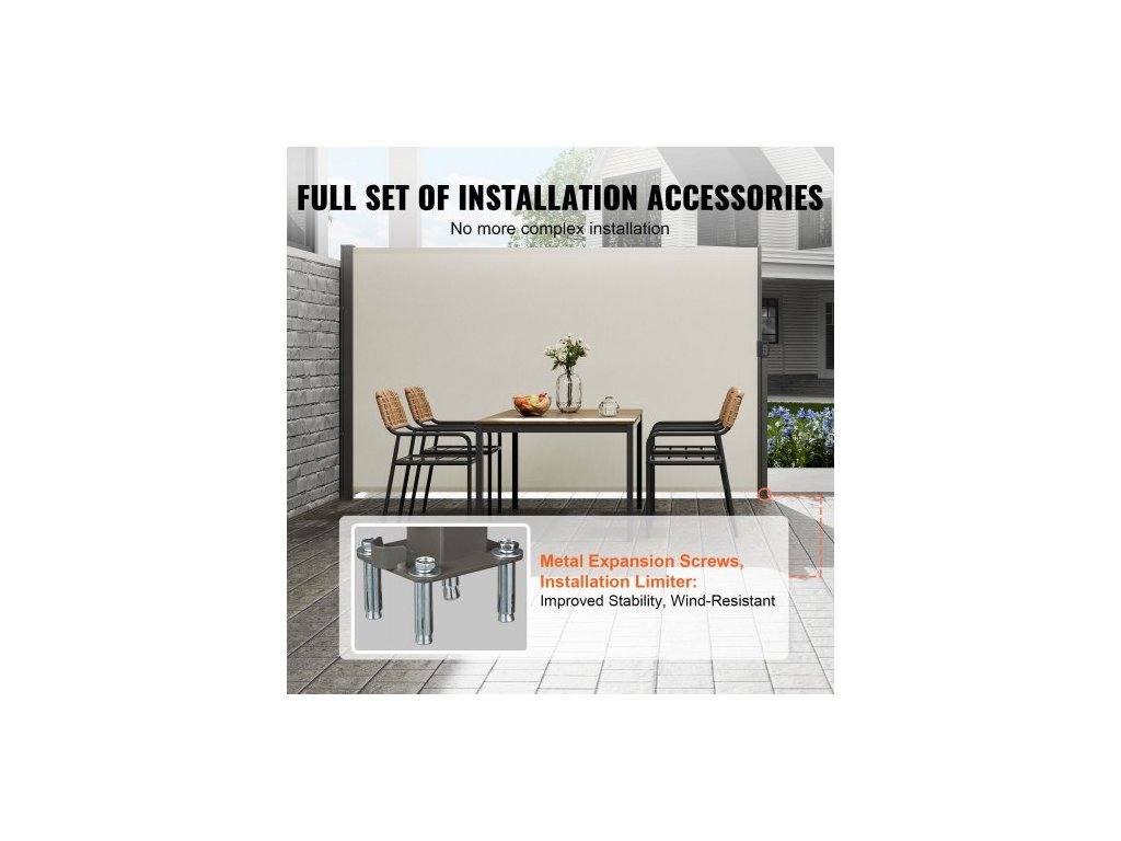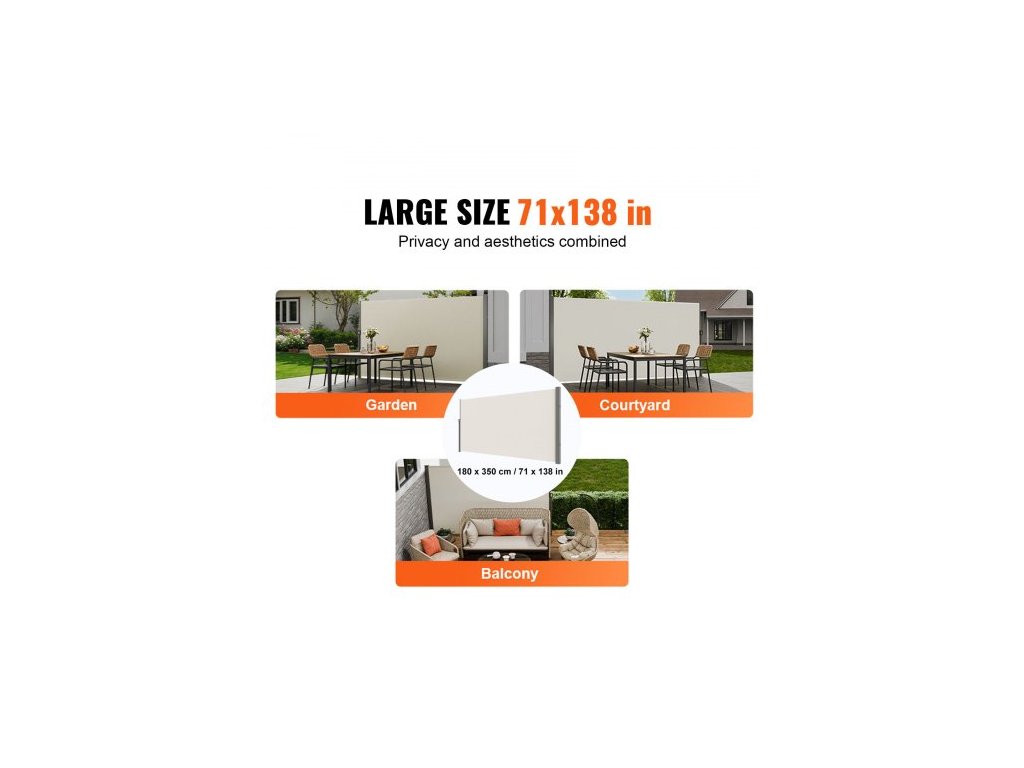 Zatahovací boční markýza, venkovní soukromí 71''x 138'', 180g polyesterová voděodolná zatahovací zástěna na terasu, UV 30+ dělicí stěna, větrná clona na terasu, dvůr, balkon, béžová
