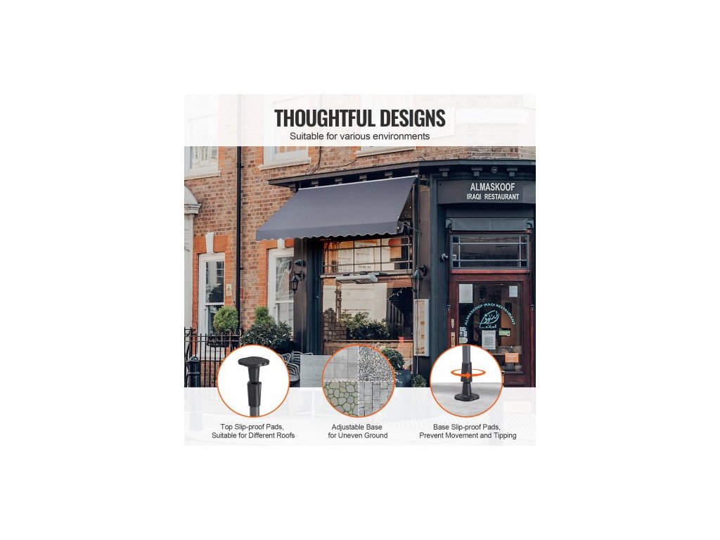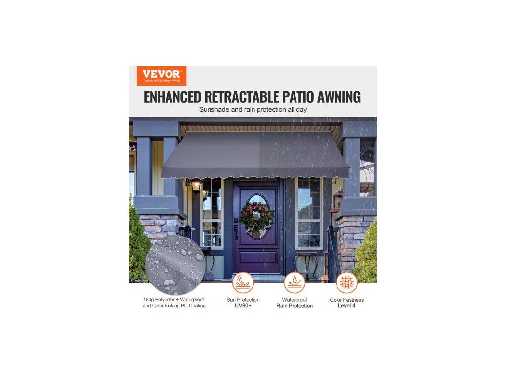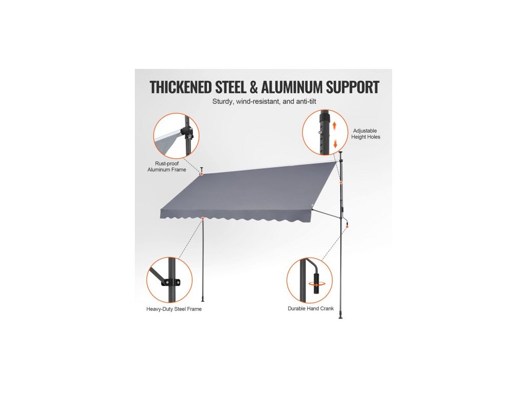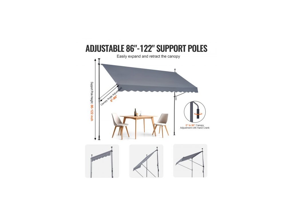 Velikost kliky: 45,3 palce/115 cm,Číslo modelu položky: SDA350120-1,Odolnost proti větru: Úroveň 2,Hmotnost výrobku: 19,62 lbs/8,9 kg,Hlavní materiál: Ocel + oboustranný PU povlak 180G,Úroveň ochrany před sluncem: UV80+,Barva: Šedá,Rozměry výrobku: 138 × 47 palců/350 x 120 cm