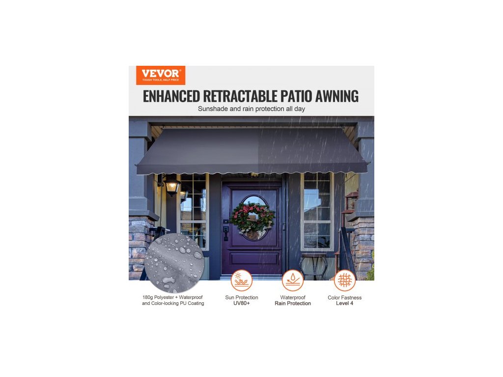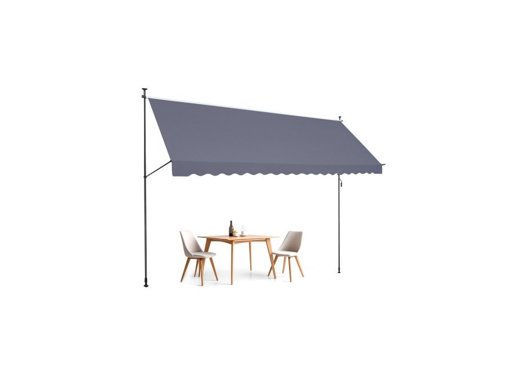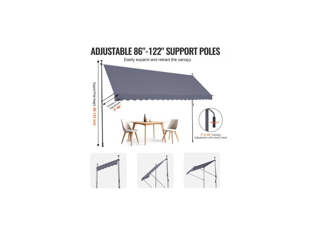 Zatahovací markýza 178 x 47" s ruční klikou, venkovní stříška proti slunci, nastavitelná výška od 86 do 122 palců, pro terasu/balkon/dvorek, tmavě šedáSluneční clona a vodotěsná