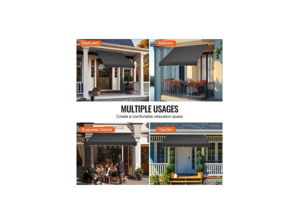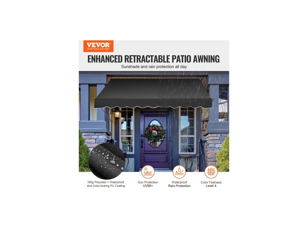 Zatahovací markýza 98 x 47" na terasu, sluneční clona s ruční klikou, venkovní stříška na terasu, nastavitelná výška od 86 do 122 palců, pro terasu/balkon/dvorek, černáSluneční clona a vodotěsná