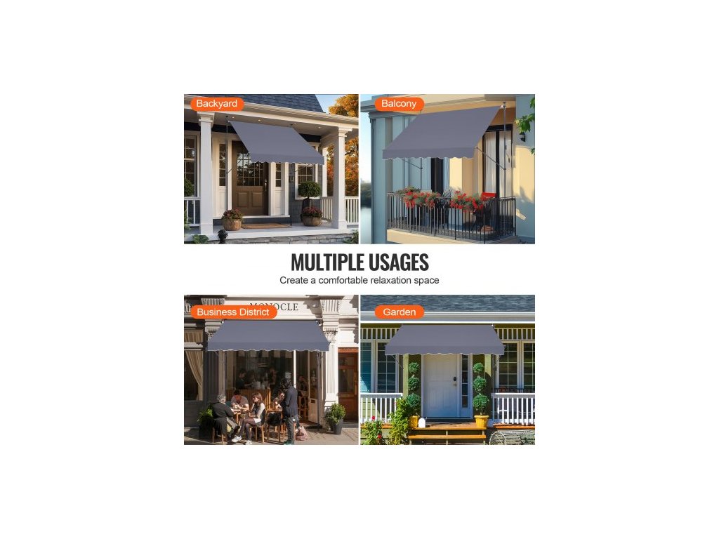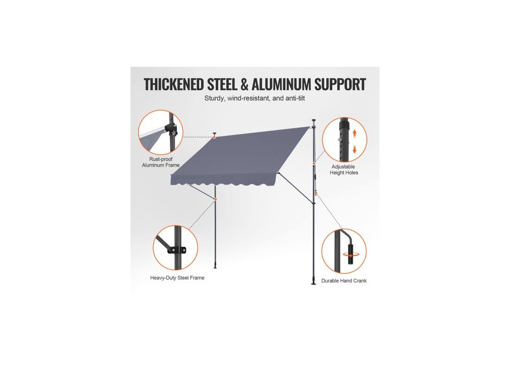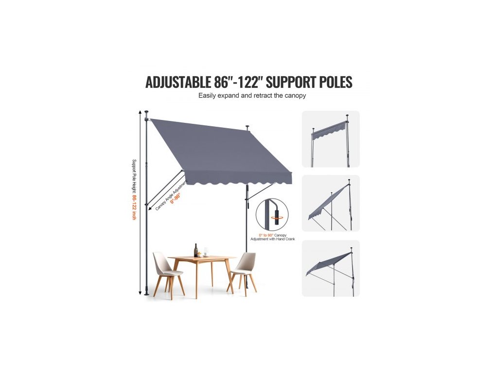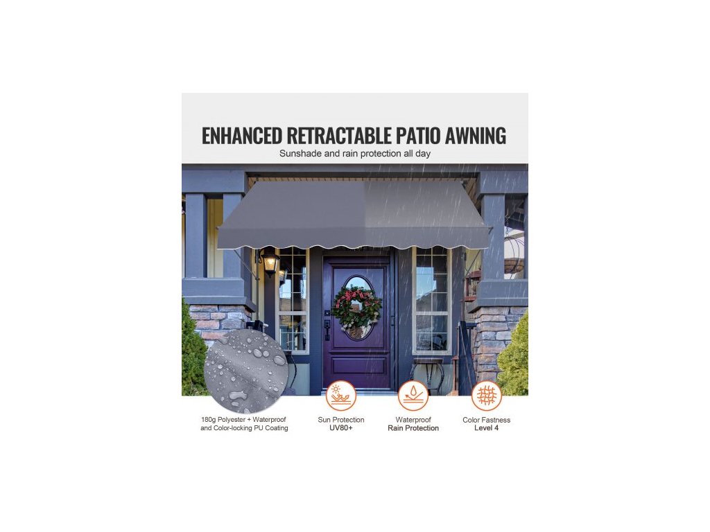 Velikost kliky: 45,3 palce/115 cm,Číslo modelu položky: SDA250120-1,Odolnost proti větru: Úroveň 2,Hmotnost výrobku: 17,09 lbs/7,75 kg,Hlavní materiál: Ocel + oboustranný PU povlak 180G,Úroveň ochrany před sluncem: UV80+,Barva: Šedá,Rozměry výrobku: 98 × 47 palců/250 x 120 cm