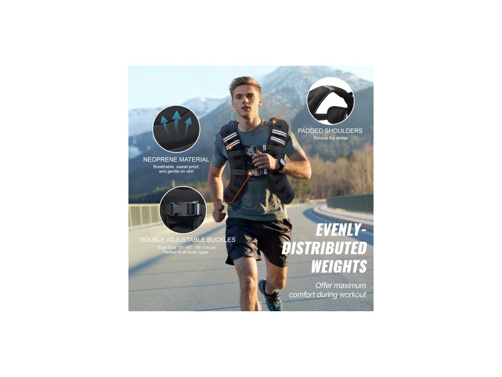 Pevná hmotnost: 13,8 kg, Barva: Černá, Číslo modelu položky: JS-VEST005-4, Materiál: Neopren, Obvod hrudníku: 89-114 cm, Výplň: Železné pelety