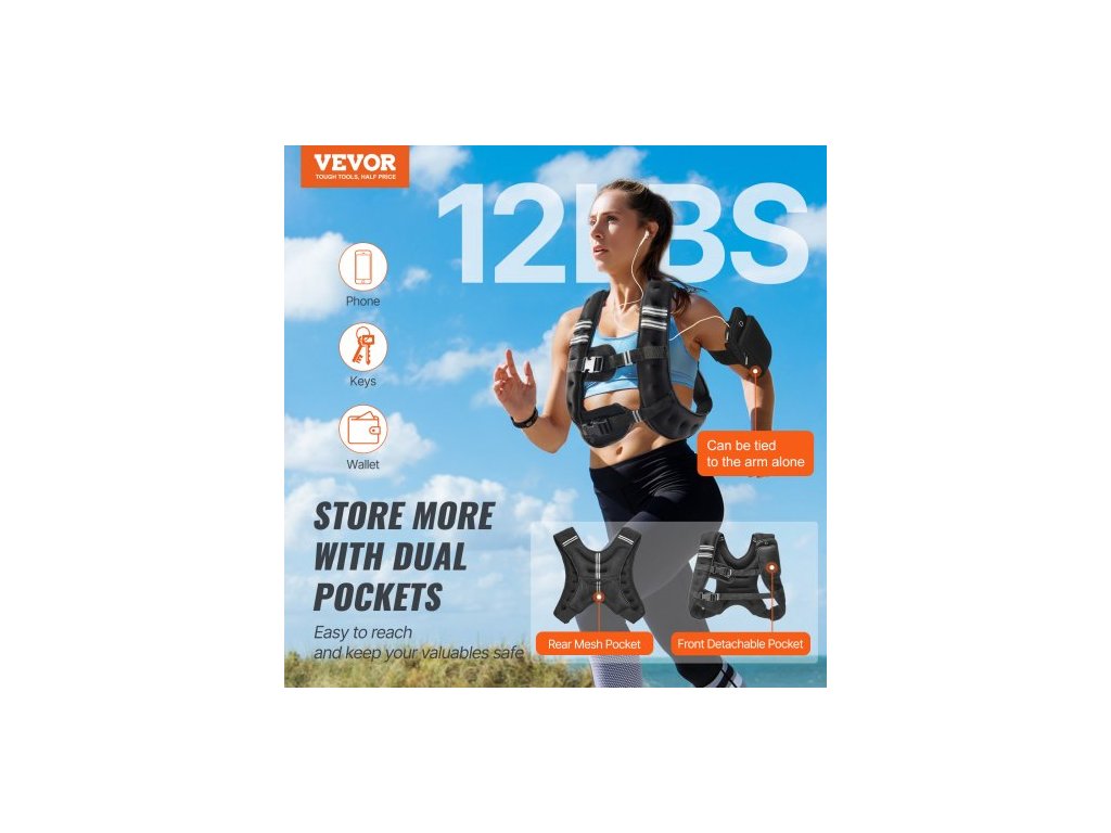 Zátěžová vesta , zátěžová vesta s reflexním pruhem a nosností 12 liber, nastavitelná přezka, pro muže a ženy, cvičební pomůcky pro silový trénink, běh, jogging, fitness a hubnutíVíce úložného prostoru