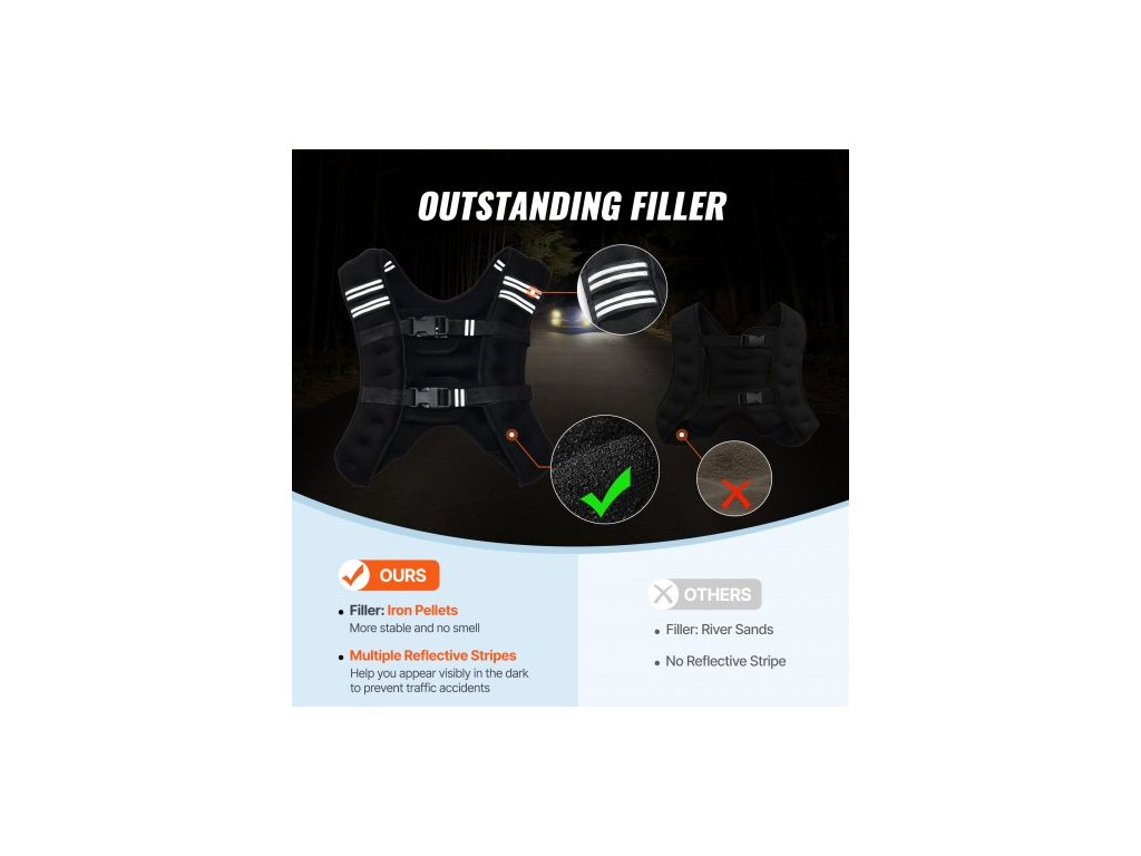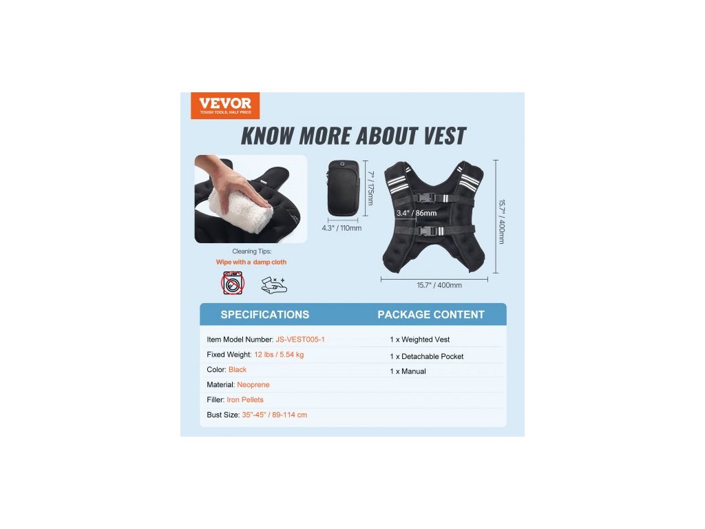 Pevná hmotnost: 12 liber / 5,54 kg, Barva: Černá, Číslo modelu položky: JS-VEST005-1, Materiál: Neopren, Obvod hrudníku: 35"-45" / 89-114 cm, Výplň: Železné pelety