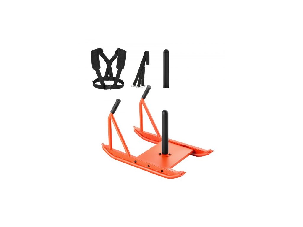 zátěžové saně, ocelové posilovací saně, posilovací saně pro zlepšení rychlosti při sportovním cvičení, fitness vybavení s rukojetí, kompatibilní s kotouči o průměru 25/51 mm, oranžovéPohodlný zátěžový úvazek
