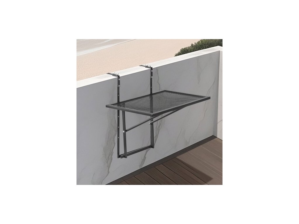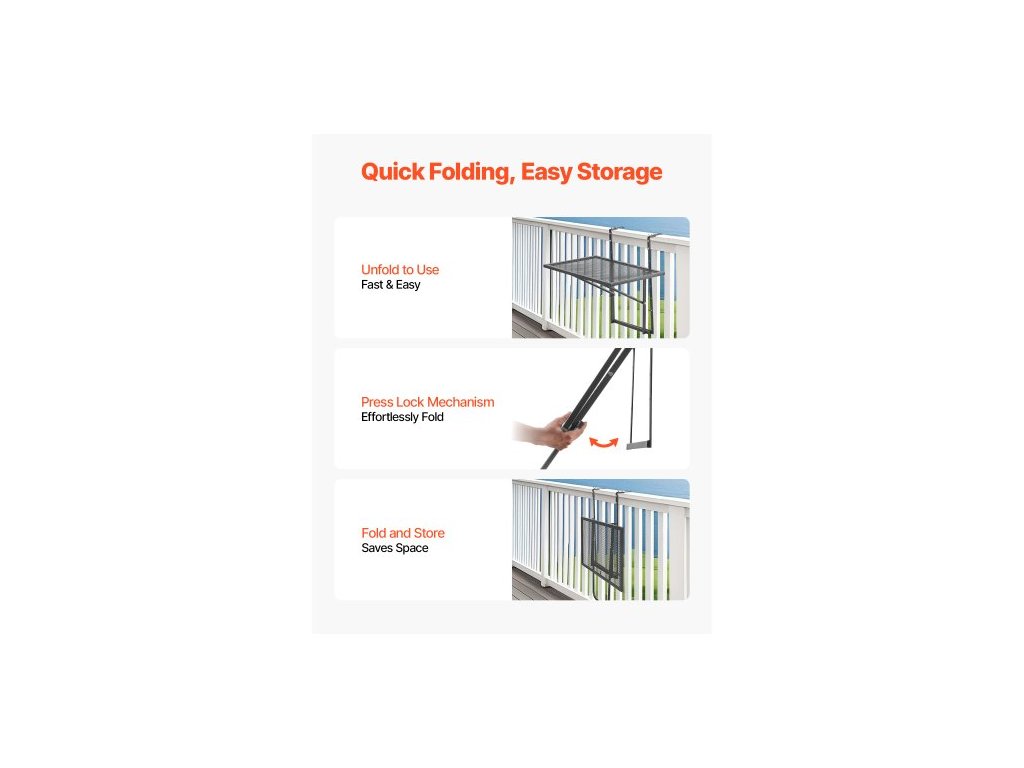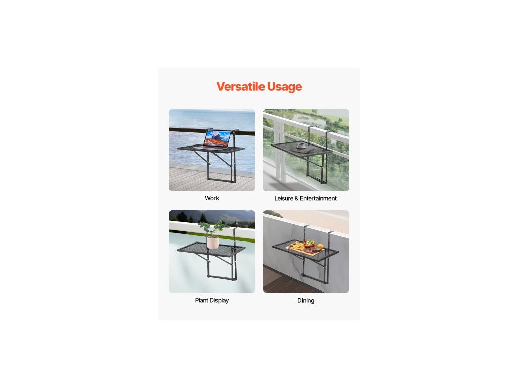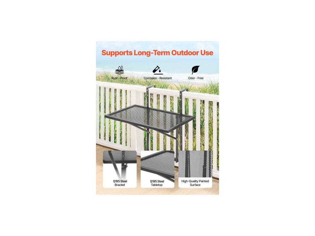 Závěsný stůl na balkon , kovový skládací stůl na balkon s nástavcem 19 x 24 palců, venkovní barový stůl na balkon s nástavcem, nastavitelný v 5 úrovních, vhodný pro zábradlí od 1" do 4,7", servírovací stůl na terasu a terasuMultifunkční a praktický